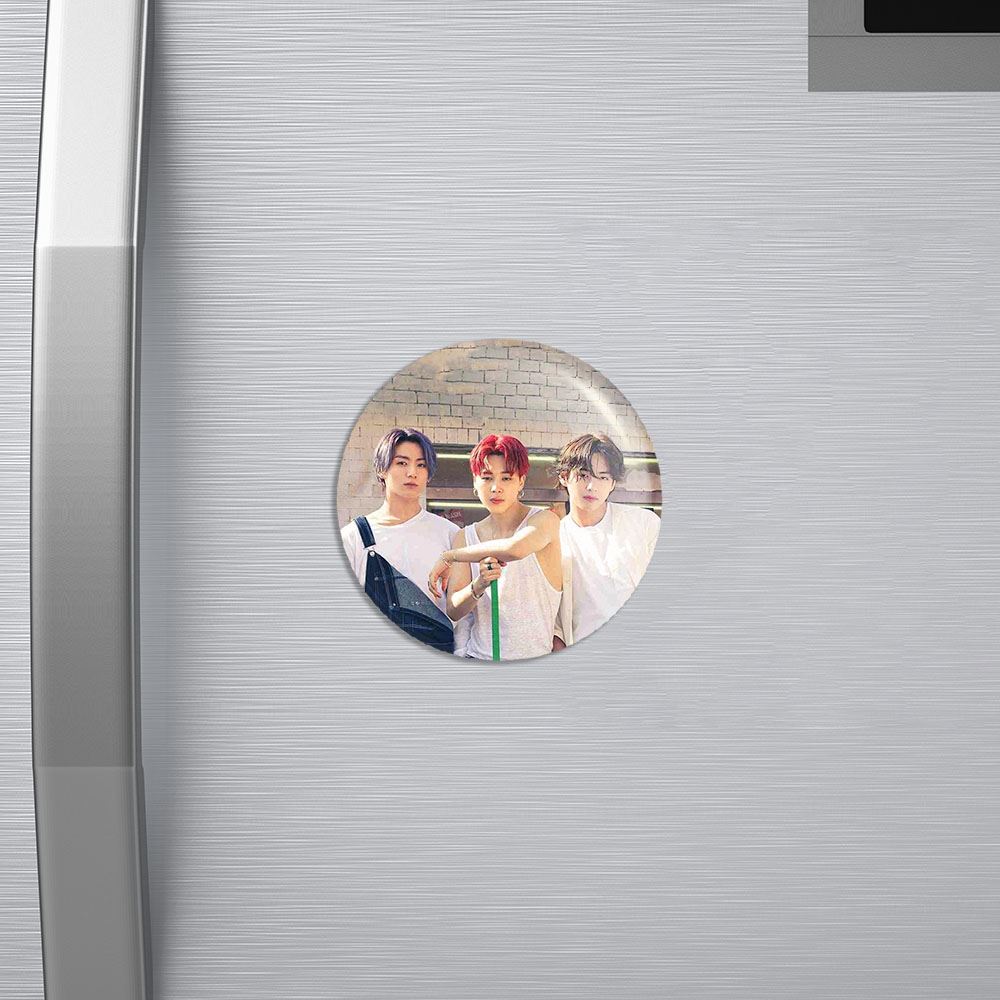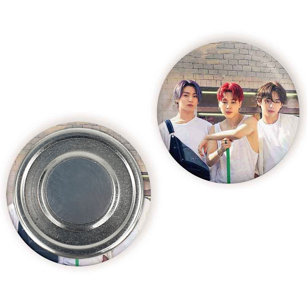 مگنت گروه بی تی اس BTS خندالو با روکش سلفون مات مخملی ضدخش و قطعه پشتی فلزی تولید شده است که آهنربای اتمی بکار برده شده در محصول، بصورت مخفی تعبیه شده ودیده نمی شود. ضمن اینکه گیرایی بسیار بالایی داشته و به هیچ عنوان از روی یخچال نمی افتد.
