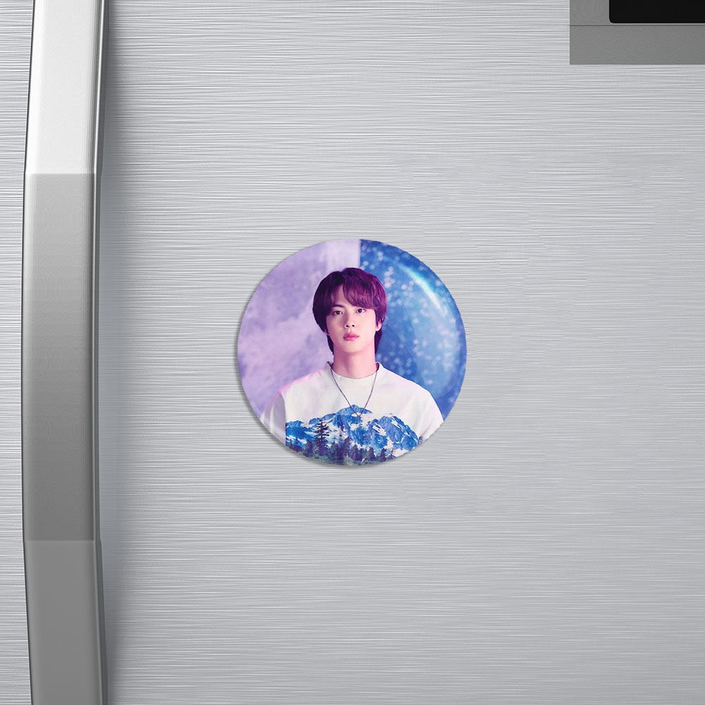 مگنت جین Jin گروه بی تی اس BTS خندالو با روکش سلفون مات مخملی ضدخش و قطعه پشتی فلزی تولید شده است که آهنربای اتمی بکار برده شده در محصول، بصورت مخفی تعبیه شده ودیده نمی شود. ضمن اینکه گیرایی بسیار بالایی داشته و به هیچ عنوان از روی یخچال نمی افتد.