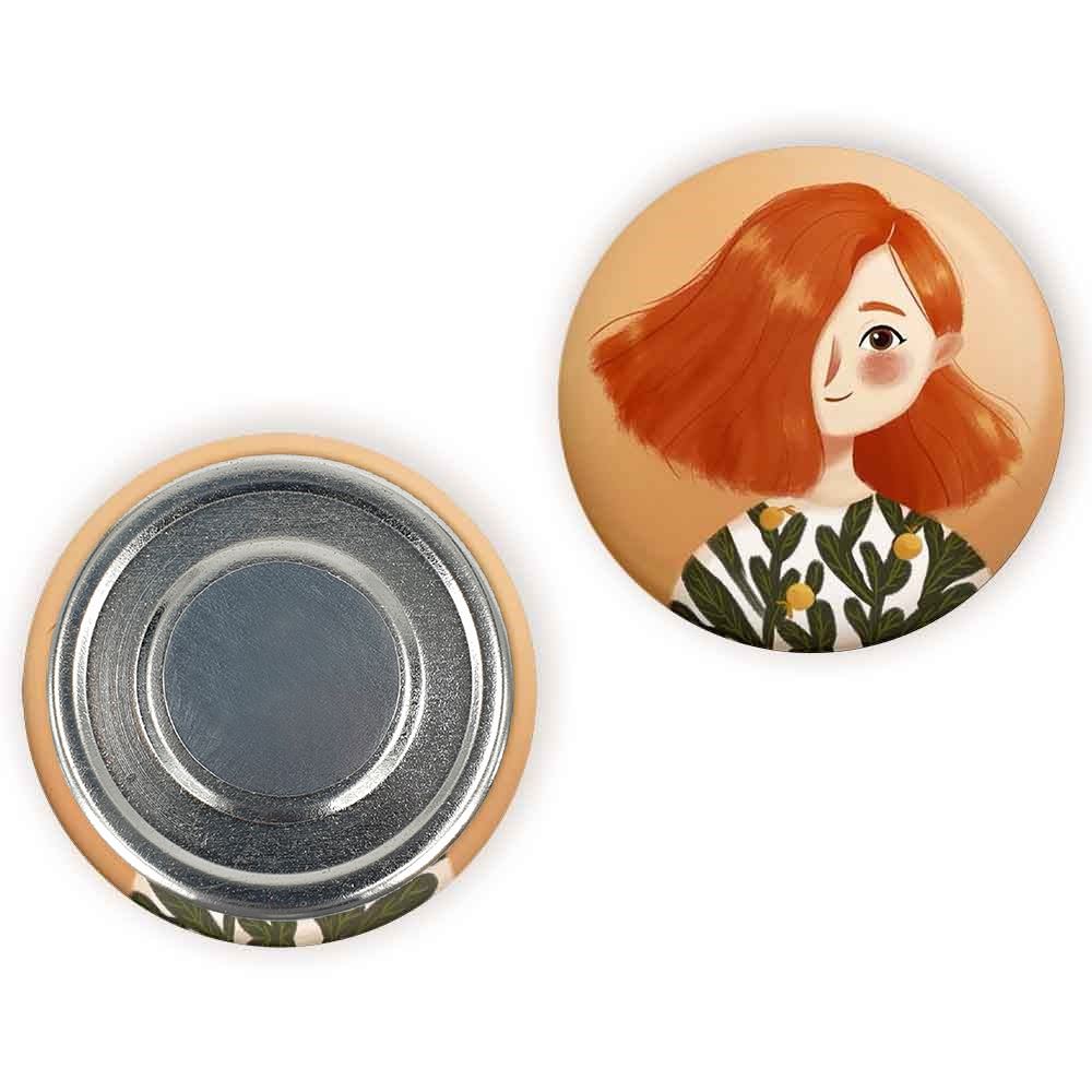 مگنت دخترونه خندالو با روکش سلفون مات مخملی ضدخش و قطعه پشتی فلزی تولید شده است که آهنربای اتمی بکار برده شده در محصول، بصورت مخفی تعبیه شده ودیده نمی شود. ضمن اینکه گیرایی بسیار بالایی داشته و به هیچ عنوان از روی یخچال نمی افتد.