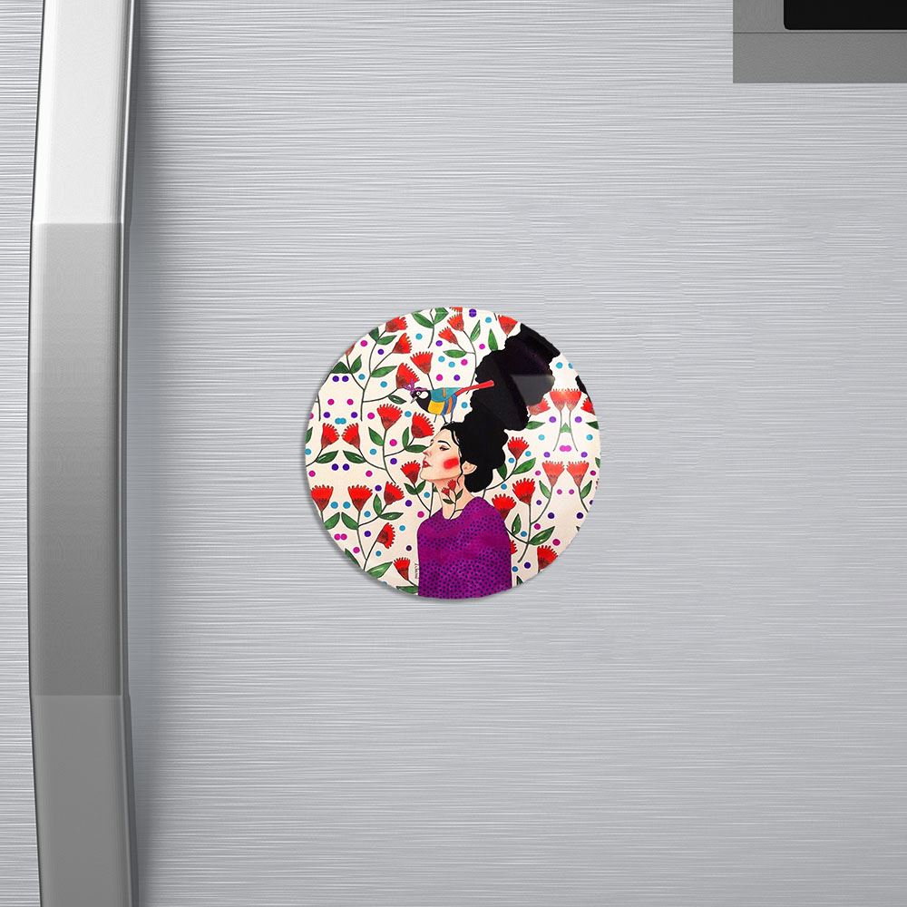 مگنت دخترونه خندالو با روکش سلفون مات مخملی ضدخش و قطعه پشتی فلزی تولید شده است که آهنربای اتمی بکار برده شده در محصول، بصورت مخفی تعبیه شده ودیده نمی شود. ضمن اینکه گیرایی بسیار بالایی داشته و به هیچ عنوان از روی یخچال نمی افتد.