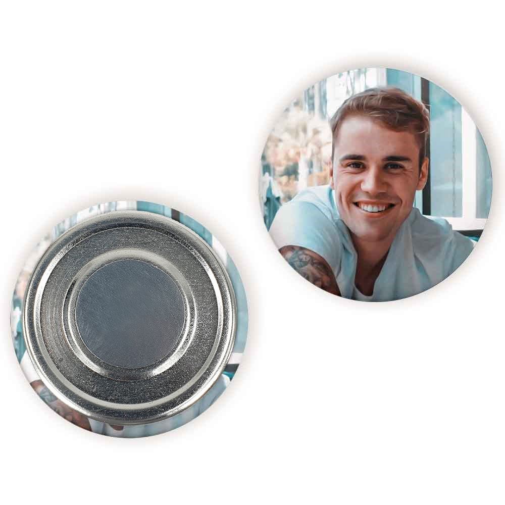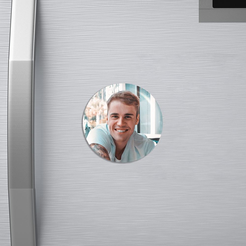 مگنت جاستین بیبر Justin Bieber خندالو با روکش سلفون مات مخملی ضدخش و قطعه پشتی فلزی تولید شده است که آهنربای اتمی بکار برده شده در محصول، بصورت مخفی تعبیه شده ودیده نمی شود. ضمن اینکه گیرایی بسیار بالایی داشته و به هیچ عنوان از روی یخچال نمی افتد.