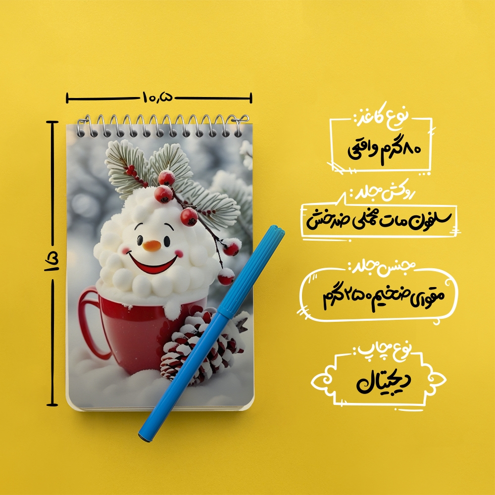 برند خندالو در زمینه تولید انواع دفاتر فانتزی و تحصیلی فعالیت میکند که به دلیل جذابیت ظاهری و طرح های متنوع طرفداران زیادی دارد. دفتر یادداشت خندالو طرح کاپ برفی محصولی مناسب برای همه عاشقان لوازم التحریر است و همچنین همه کسانی که بنا به موقعیت تحصیل یا شغلشان با دفتر و نوشت افزار زیاد سر و کار دارند. در تولید دفتر یادداشت خندالو طرح کاپ برفی از نوع صحافی فنر مارپیچ استفاده شده که در این نوع صحافی برگهها به راحتی چرخیده و یا بیرون آورده می شوند. دفتر های خندالو دارای جلد انعطاف پذیر از جنس مقوای گلاسه 250 گرم با روکش سلفون مات مخملی است که به شما امکان میدهد از دفتر خود بدون اینکه نگرانی از شکستن یا خراب شدن جلد را داشته باشید استفاده کنید و همچنین در این دفاتر از کاغذ 80 گرم با کیفیت استفاده شده که باعث میشود هنگام نوشتن به خوبی جوهر قلم بر روی صفحه نشسته و از خط خوردگیها جلوگیری کند. دفتر یادداشت خندالو با جنس و دوام مناسب، برگه های کاملاً سفید و خطوط طوسی دقیق را داراست که انسان را به نوشتن منظم و زیبا ترغیب میکند. طراحی کاملاً مناسب این دفاتر، به همراه کیفیت بالا، از آن یک محصول مورد علاقه و قابل اعتماد برای همه مقاطع تحصیلی میسازد. دفتر یادداشت خندالو طرح کاپ برفی انتخابی هوشمندانه و مناسب برای افرادی است که به دنبال دفتری با کیفیت و کاربرد عالی هستند. این دفتر، همراه خوبی برای شما در تمام مراحل تحصیل و کار خواهد بود و تجربهای لذتبخش از نوشتن و آموختن را به شما هدیه میدهد.