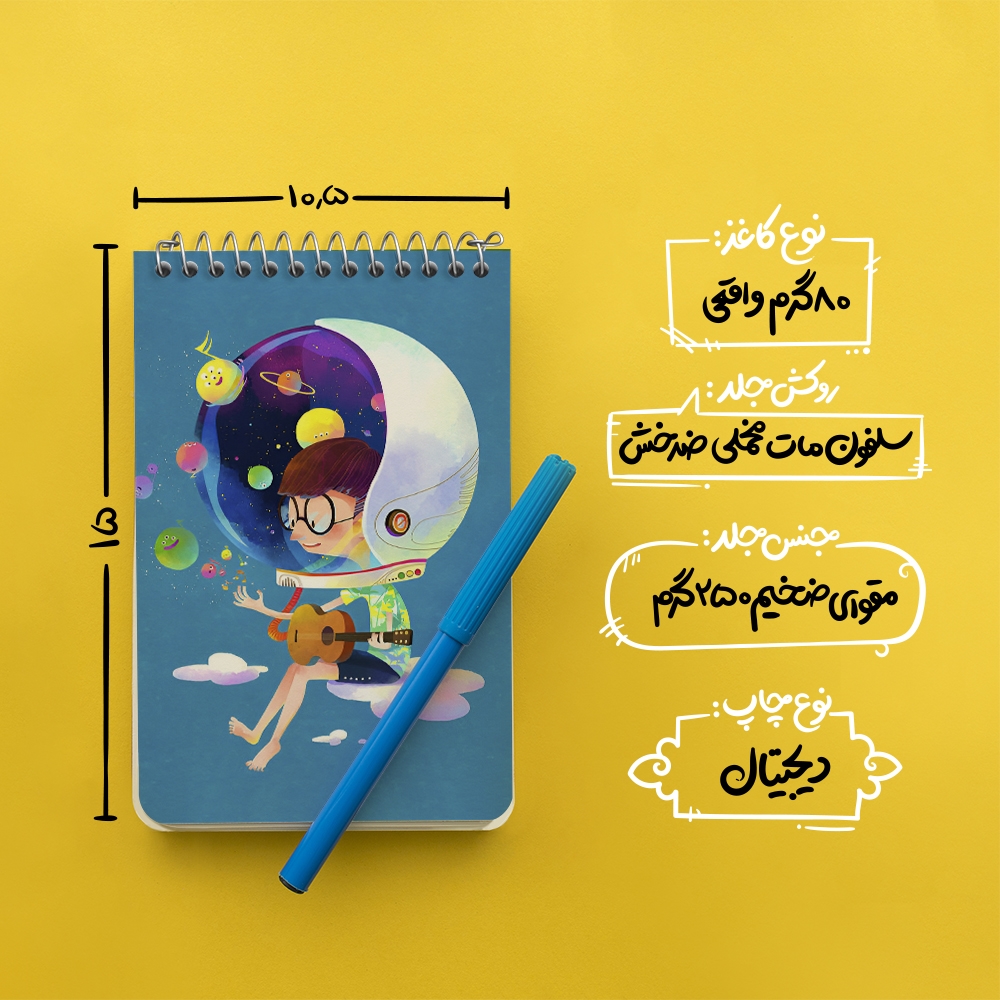 برند خندالو در زمینه تولید انواع دفاتر فانتزی و تحصیلی فعالیت میکند که به دلیل جذابیت ظاهری و طرح های متنوع طرفداران زیادی دارد. دفتر یادداشت خندالو طرح پسر فضانورد محصولی مناسب برای همه عاشقان لوازم التحریر است و همچنین همه کسانی که بنا به موقعیت تحصیل یا شغلشان با دفتر و نوشت افزار زیاد سر و کار دارند. در تولید دفتر یادداشت خندالو طرح پسر فضانورد از نوع صحافی فنر مارپیچ استفاده شده که در این نوع صحافی برگهها به راحتی چرخیده و یا بیرون آورده می شوند. دفتر های خندالو دارای جلد انعطاف پذیر از جنس مقوای گلاسه 250 گرم با روکش سلفون مات مخملی است که به شما امکان میدهد از دفتر خود بدون اینکه نگرانی از شکستن یا خراب شدن جلد را داشته باشید استفاده کنید و همچنین در این دفاتر از کاغذ 80 گرم با کیفیت استفاده شده که باعث میشود هنگام نوشتن به خوبی جوهر قلم بر روی صفحه نشسته و از خط خوردگیها جلوگیری کند. دفتر یادداشت خندالو با جنس و دوام مناسب، برگه های کاملاً سفید و خطوط طوسی دقیق را داراست که انسان را به نوشتن منظم و زیبا ترغیب میکند. طراحی کاملاً مناسب این دفاتر، به همراه کیفیت بالا، از آن یک محصول مورد علاقه و قابل اعتماد برای همه مقاطع تحصیلی میسازد. دفتر یادداشت خندالو طرح پسر فضانورد انتخابی هوشمندانه و مناسب برای افرادی است که به دنبال دفتری با کیفیت و کاربرد عالی هستند. این دفتر، همراه خوبی برای شما در تمام مراحل تحصیل و کار خواهد بود و تجربهای لذتبخش از نوشتن و آموختن را به شما هدیه میدهد.