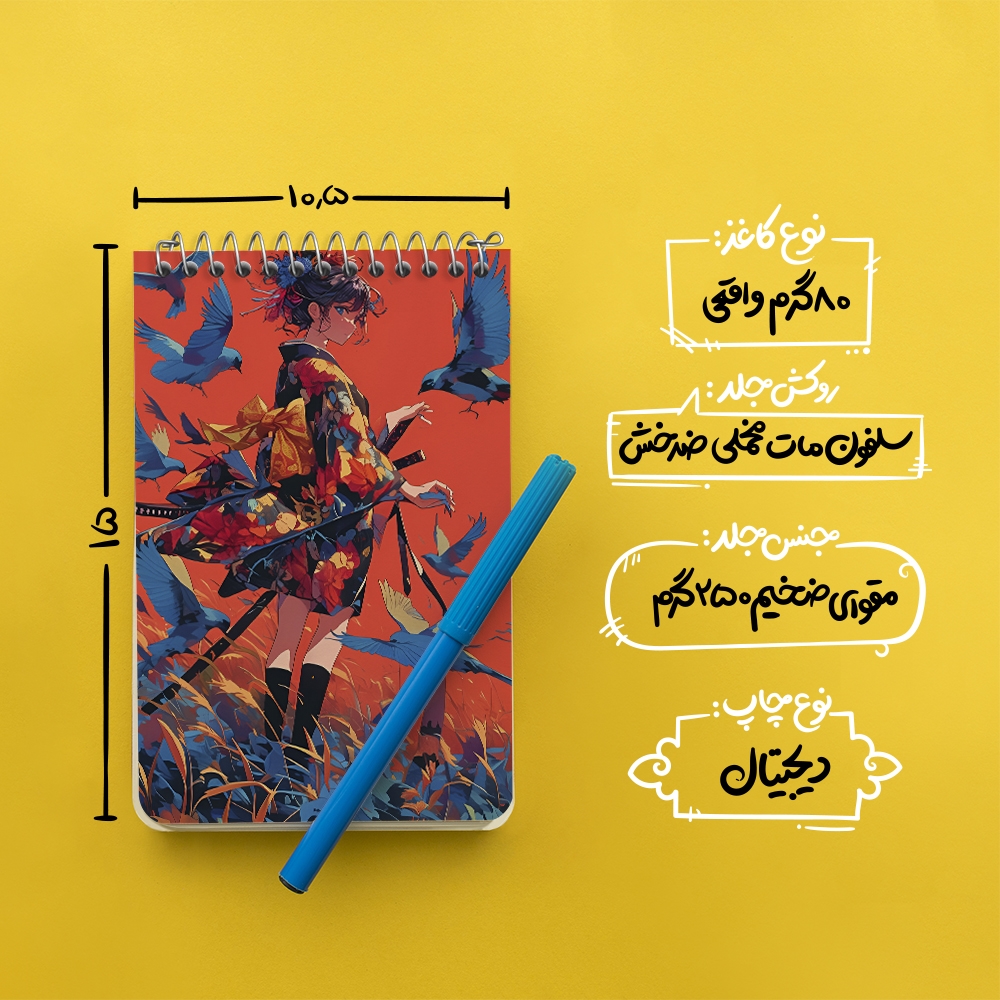 برند خندالو در زمینه تولید انواع دفاتر فانتزی و تحصیلی فعالیت میکند که به دلیل جذابیت ظاهری و طرح های متنوع طرفداران زیادی دارد. دفتر یادداشت خندالو طرح دختر سامورایی محصولی مناسب برای همه عاشقان لوازم التحریر است و همچنین همه کسانی که بنا به موقعیت تحصیل یا شغلشان با دفتر و نوشت افزار زیاد سر و کار دارند. در تولید دفتر یادداشت خندالو طرح دختر سامورایی از نوع صحافی فنر مارپیچ استفاده شده که در این نوع صحافی برگهها به راحتی چرخیده و یا بیرون آورده می شوند. دفتر های خندالو دارای جلد انعطاف پذیر از جنس مقوای گلاسه 250 گرم با روکش سلفون مات مخملی است که به شما امکان میدهد از دفتر خود بدون اینکه نگرانی از شکستن یا خراب شدن جلد را داشته باشید استفاده کنید و همچنین در این دفاتر از کاغذ 80 گرم با کیفیت استفاده شده که باعث میشود هنگام نوشتن به خوبی جوهر قلم بر روی صفحه نشسته و از خط خوردگیها جلوگیری کند. دفتر یادداشت خندالو با جنس و دوام مناسب، برگه های کاملاً سفید و خطوط طوسی دقیق را داراست که انسان را به نوشتن منظم و زیبا ترغیب میکند. طراحی کاملاً مناسب این دفاتر، به همراه کیفیت بالا، از آن یک محصول مورد علاقه و قابل اعتماد برای همه مقاطع تحصیلی میسازد. دفتر یادداشت خندالو طرح دختر سامورایی انتخابی هوشمندانه و مناسب برای افرادی است که به دنبال دفتری با کیفیت و کاربرد عالی هستند. این دفتر، همراه خوبی برای شما در تمام مراحل تحصیل و کار خواهد بود و تجربهای لذتبخش از نوشتن و آموختن را به شما هدیه میدهد.
