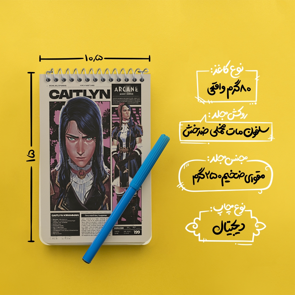 برند خندالو در زمینه تولید انواع دفاتر فانتزی و تحصیلی فعالیت میکند که به دلیل جذابیت ظاهری و طرح های متنوع طرفداران زیادی دارد. دفتر یادداشت خندالو طرح کیتلین آرکین (Arcane) محصولی مناسب برای همه عاشقان لوازم التحریر است و همچنین همه کسانی که بنا به موقعیت تحصیل یا شغلشان با دفتر و نوشت افزار زیاد سر و کار دارند. در تولید دفتر یادداشت خندالو طرح کیتلین آرکین (Arcane) از نوع صحافی فنر مارپیچ استفاده شده که در این نوع صحافی برگهها به راحتی چرخیده و یا بیرون آورده می شوند. دفتر های خندالو دارای جلد انعطاف پذیر از جنس مقوای گلاسه 250 گرم با روکش سلفون مات مخملی است که به شما امکان میدهد از دفتر خود بدون اینکه نگرانی از شکستن یا خراب شدن جلد را داشته باشید استفاده کنید و همچنین در این دفاتر از کاغذ 80 گرم با کیفیت استفاده شده که باعث میشود هنگام نوشتن به خوبی جوهر قلم بر روی صفحه نشسته و از خط خوردگیها جلوگیری کند. دفتر یادداشت خندالو با جنس و دوام مناسب، برگه های کاملاً سفید و خطوط طوسی دقیق را داراست که انسان را به نوشتن منظم و زیبا ترغیب میکند. طراحی کاملاً مناسب این دفاتر، به همراه کیفیت بالا، از آن یک محصول مورد علاقه و قابل اعتماد برای همه مقاطع تحصیلی میسازد. دفتر یادداشت خندالو طرح کیتلین آرکین (Arcane) انتخابی هوشمندانه و مناسب برای افرادی است که به دنبال دفتری با کیفیت و کاربرد عالی هستند. این دفتر، همراه خوبی برای شما در تمام مراحل تحصیل و کار خواهد بود و تجربهای لذتبخش از نوشتن و آموختن را به شما هدیه میدهد.