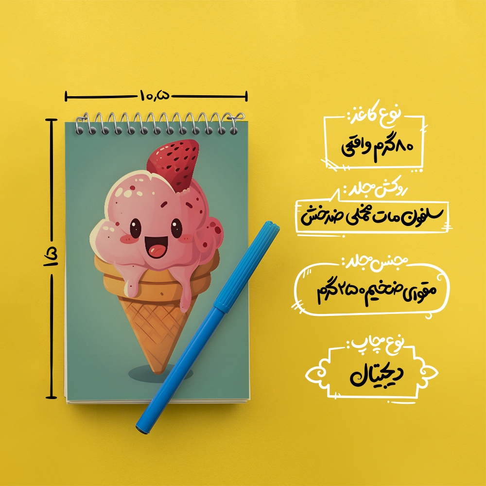 برند خندالو در زمینه تولید انواع دفاتر فانتزی و تحصیلی فعالیت میکند که به دلیل جذابیت ظاهری و طرح های متنوع طرفداران زیادی دارد. دفتر یادداشت خندالو طرح بستنی توت فرنگی محصولی مناسب برای همه عاشقان لوازم التحریر است و همچنین همه کسانی که بنا به موقعیت تحصیل یا شغلشان با دفتر و نوشت افزار زیاد سر و کار دارند. در تولید دفتر یادداشت خندالو طرح بستنی توت فرنگی از نوع صحافی فنر مارپیچ استفاده شده که در این نوع صحافی برگهها به راحتی چرخیده و یا بیرون آورده می شوند. دفتر های خندالو دارای جلد انعطاف پذیر از جنس مقوای گلاسه 250 گرم با روکش سلفون مات مخملی است که به شما امکان میدهد از دفتر خود بدون اینکه نگرانی از شکستن یا خراب شدن جلد را داشته باشید استفاده کنید و همچنین در این دفاتر از کاغذ 80 گرم با کیفیت استفاده شده که باعث میشود هنگام نوشتن به خوبی جوهر قلم بر روی صفحه نشسته و از خط خوردگیها جلوگیری کند. دفتر یادداشت خندالو با جنس و دوام مناسب، برگه های کاملاً سفید و خطوط طوسی دقیق را داراست که انسان را به نوشتن منظم و زیبا ترغیب میکند. طراحی کاملاً مناسب این دفاتر، به همراه کیفیت بالا، از آن یک محصول مورد علاقه و قابل اعتماد برای همه مقاطع تحصیلی میسازد. دفتر یادداشت خندالو طرح بستنی توت فرنگی انتخابی هوشمندانه و مناسب برای افرادی است که به دنبال دفتری با کیفیت و کاربرد عالی هستند. این دفتر، همراه خوبی برای شما در تمام مراحل تحصیل و کار خواهد بود و تجربهای لذتبخش از نوشتن و آموختن را به شما هدیه میدهد.