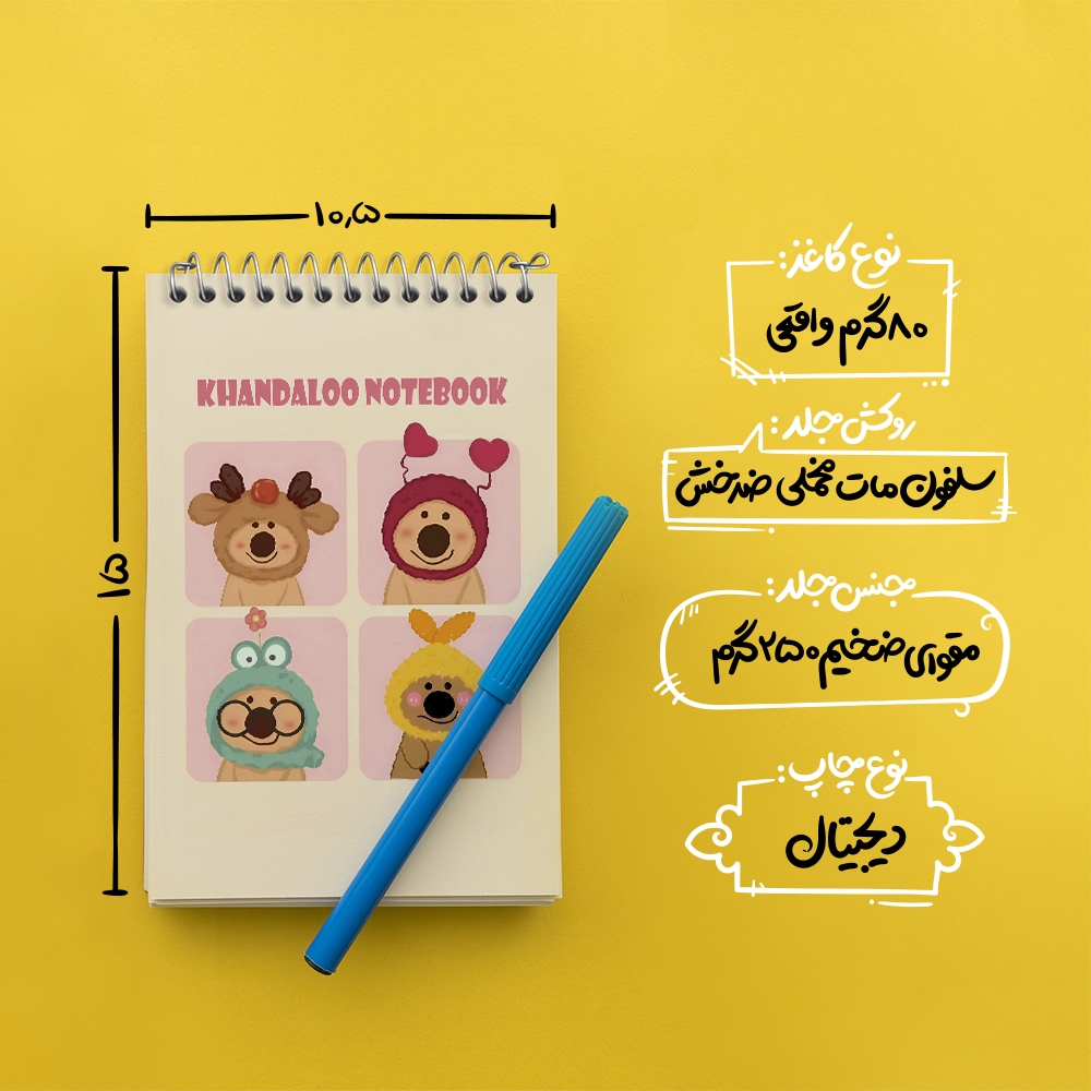 برند خندالو در زمینه تولید انواع دفاتر فانتزی و تحصیلی فعالیت میکند که به دلیل جذابیت ظاهری و طرح های متنوع طرفداران زیادی دارد. دفتر یادداشت خندالو طرح سگ های بامزه محصولی مناسب برای همه عاشقان لوازم التحریر است و همچنین همه کسانی که بنا به موقعیت تحصیل یا شغلشان با دفتر و نوشت افزار زیاد سر و کار دارند. در تولید دفتر یادداشت خندالو طرح سگ های بامزه از نوع صحافی فنر مارپیچ استفاده شده که در این نوع صحافی برگه‌ها به راحتی چرخیده و یا بیرون آورده می شوند.