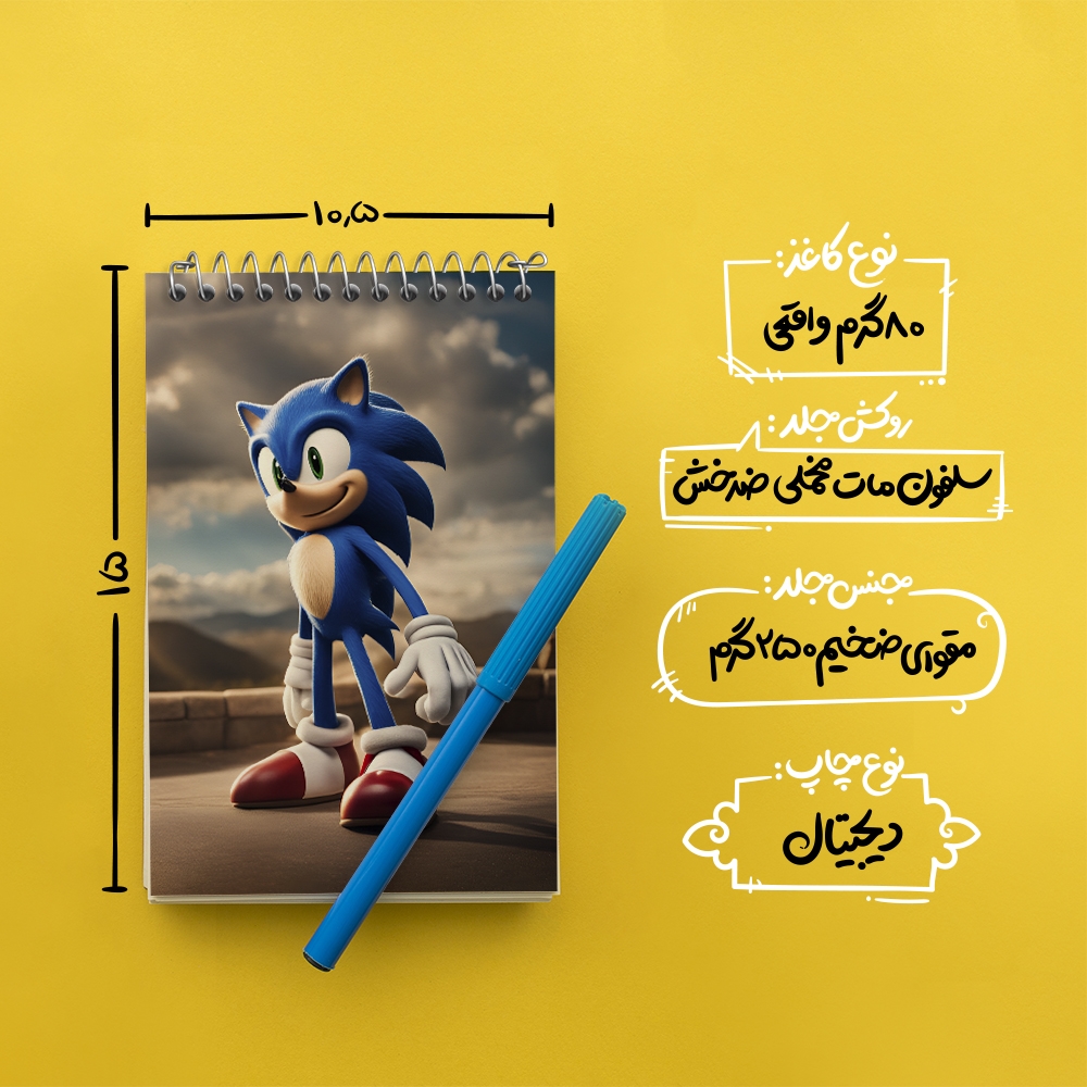 برند خندالو در زمینه تولید انواع دفاتر فانتزی و تحصیلی فعالیت میکند که به دلیل جذابیت ظاهری و طرح های متنوع طرفداران زیادی دارد. دفتر یادداشت خندالو طرح سونیک (Sonic) محصولی مناسب برای همه عاشقان لوازم التحریر است و همچنین همه کسانی که بنا به موقعیت تحصیل یا شغلشان با دفتر و نوشت افزار زیاد سر و کار دارند. در تولید دفتر یادداشت خندالو طرح سونیک (Sonic) از نوع صحافی فنر مارپیچ استفاده شده که در این نوع صحافی برگه‌ها به راحتی چرخیده و یا بیرون آورده می شوند.