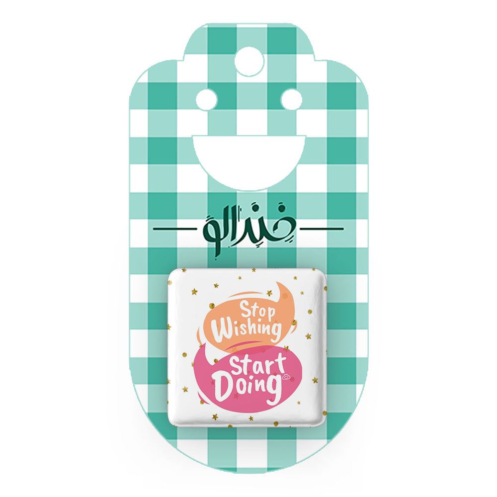 پیکسل 37 میلی متری Stop Wishing Start Doing خندالو با روکش براق با وضوح بالا و قطعه پشتی فلزی تولید شده است. قطعه پشت پیکسل مربعی با سوزن یک تکه ثابت و بدون لغزش و جا به جایی، ایستایی بسیار خوبی برای روی لباس یا کیف و یا هر محصول پارچه ای دارد که این مهم در تولید این محصول نیز رعایت شده است. چاپ پیکسل مربعی Stop Wishing Start Doing نیز با دستگاه های استاندارد و با بهترین سطح کیفی صورت گرفته و طرح با شفافیتی مثال زدنی و با سلفونی بدون لک و خط و خش بر روی پیکسل نقش بسته است. همچنین بسته بندی جذاب و مینیمال پیکسل Stop Wishing Start Doing ، آنها را مناسب هدیه کرده است.