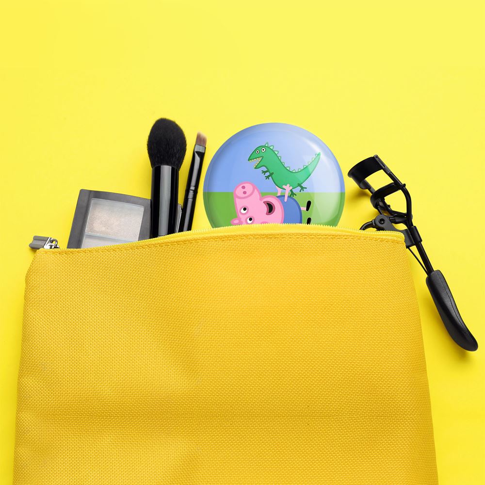آینه های جیبی جورج انیمیشن پپا پیگ Peppa pig خندالو دایره ای به قطر 7.5 سانتی متر می باشد که نه خیلی بزرگ و غیر قابل استفاده در کیف آرایشی ست و نه خیلی کوچک که تصویر خاصی در آن مشاهده نشود. سایزی استاندارد و کارآمد دارد و مناسب قرار گیری در کیف لوازم آرایش و کیف های کوچک دستی نیز هست. بدنه ی آینه جیبی جورج انیمیشن پپا پیگ Peppa pig در قسمتی که آینه را در بر گرفته فلزی بوده و ظاهر براق و بسیار زیبایی دارد. چاپ طرح در پشت آینه بوسیله چاپگرهای دیجیتال شش رنگ با شفافیت و کیفیتی مثال زدنی انجام گرفته و با روکش لمینت حرارتی پوشیده شده که در مقابل آسیب و خط و خش مقاوم بوده و کیفیت بالایی دارد. آینه های جیبی جورج انیمیشن پپا پیگ Peppa pig خندالو با تنوع طرحی بسیار بالا، سلیقه هر نوع مخاطبی را تامین میکند.