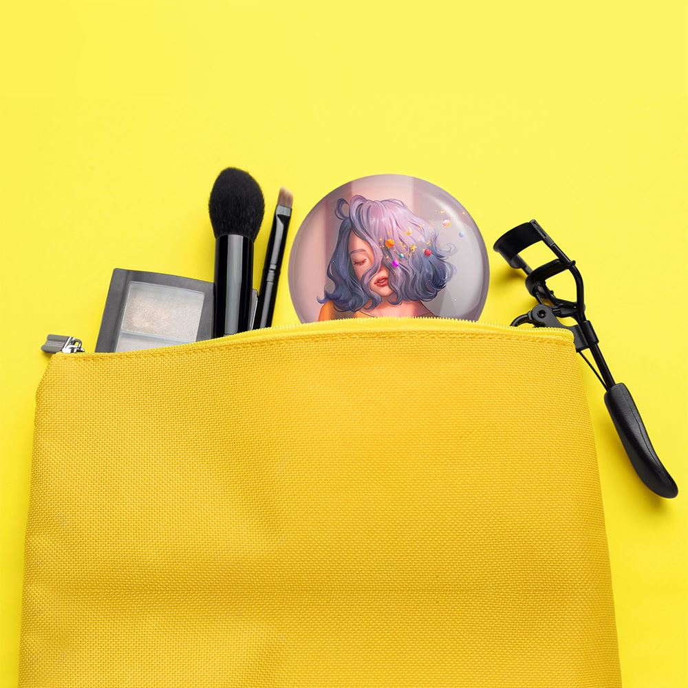 آینه های جیبی دخترانه خندالو دایره ای به قطر 7.5 سانتی متر می باشد که نه خیلی بزرگ و غیر قابل استفاده در کیف آرایشی ست و نه خیلی کوچک که تصویر خاصی در آن مشاهده نشود. سایزی استاندارد و کارآمد دارد و مناسب قرار گیری در کیف لوازم آرایش و کیف های کوچک دستی نیز هست.