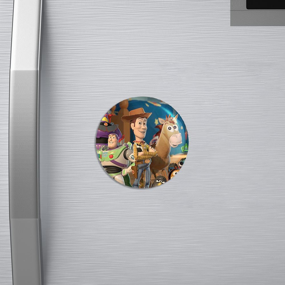 مگنت داستان اسباب بازی Toy Story خندالو با روکش سلفون مات مخملی ضدخش و قطعه پشتی فلزی تولید شده است که آهنربای اتمی بکار برده شده در محصول، بصورت مخفی تعبیه شده ودیده نمی شود. ضمن اینکه گیرایی بسیار بالایی داشته و به هیچ عنوان از روی یخچال نمی افتد.