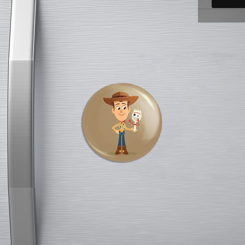 مگنت داستان اسباب بازی Toy Story خندالو با روکش سلفون مات مخملی ضدخش و قطعه پشتی فلزی تولید شده است که آهنربای اتمی بکار برده شده در محصول، بصورت مخفی تعبیه شده ودیده نمی شود. ضمن اینکه گیرایی بسیار بالایی داشته و به هیچ عنوان از روی یخچال نمی افتد.