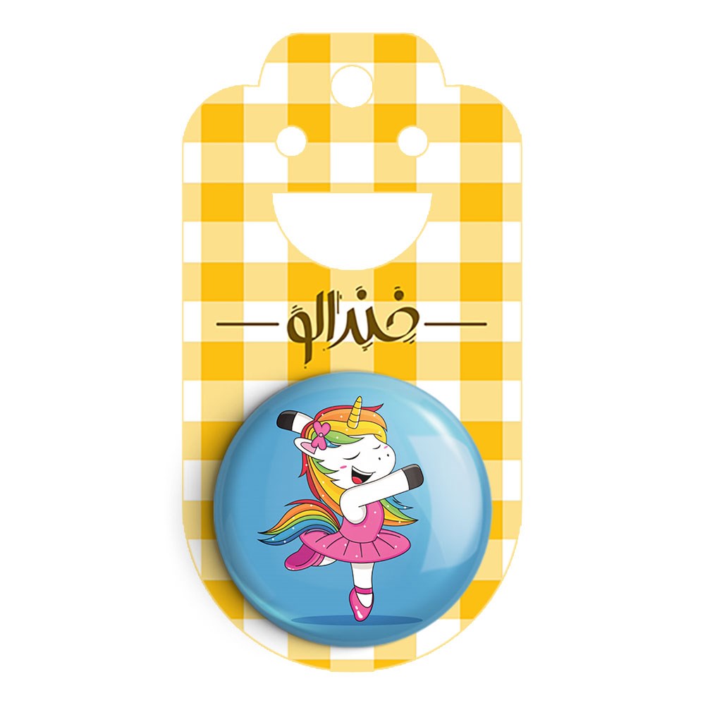 پیکسل 44 میلی متری اسب تک شاخ یونیکورن خندالو با روکش سلفون حرارتی مات مخملی ضدخش و قطعه پشتی رنگی تولید شده است.پلاستیکی پشت پیکسل با سوزن یک تکه ثابت و بدون لغزش و جا به جایی، ایستایی بسیار بهتری نسبت به پشتی فلزی پیکسل دارند که این مهم در تولید این محصول نیز رعایت شده است.