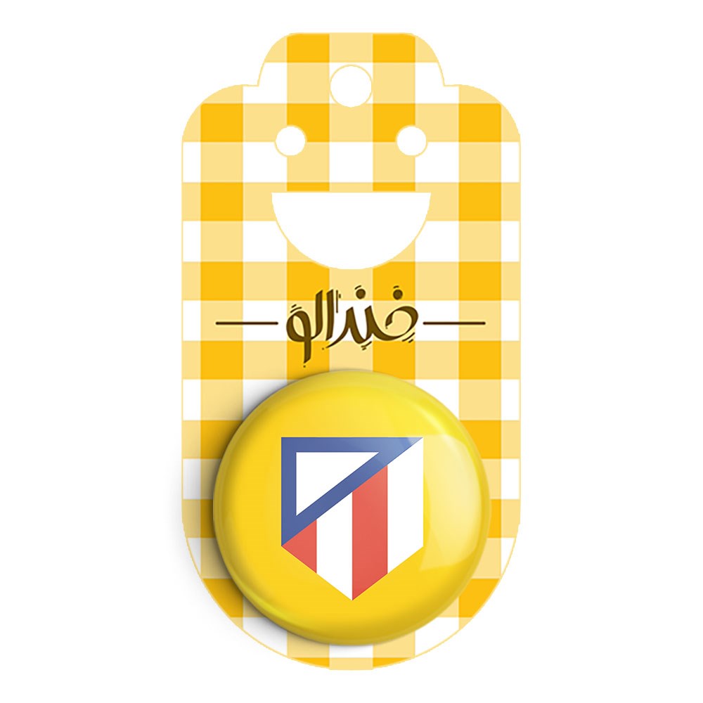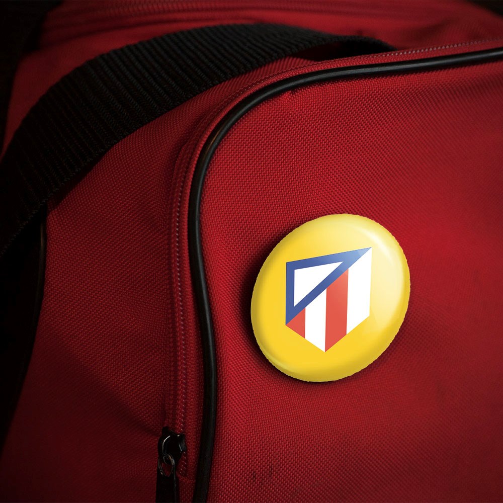 پیکسل 44 میلی متری باشگاه اتلتیکو مادرید Atletico Madrid خندالو با روکش سلفون حرارتی مات مخملی ضدخش و قطعه پشتی رنگی تولید شده است.پلاستیکی پشت پیکسل با سوزن یک تکه ثابت و بدون لغزش و جا به جایی، ایستایی بسیار بهتری نسبت به پشتی فلزی پیکسل دارند که این مهم در تولید این محصول نیز رعایت شده است.