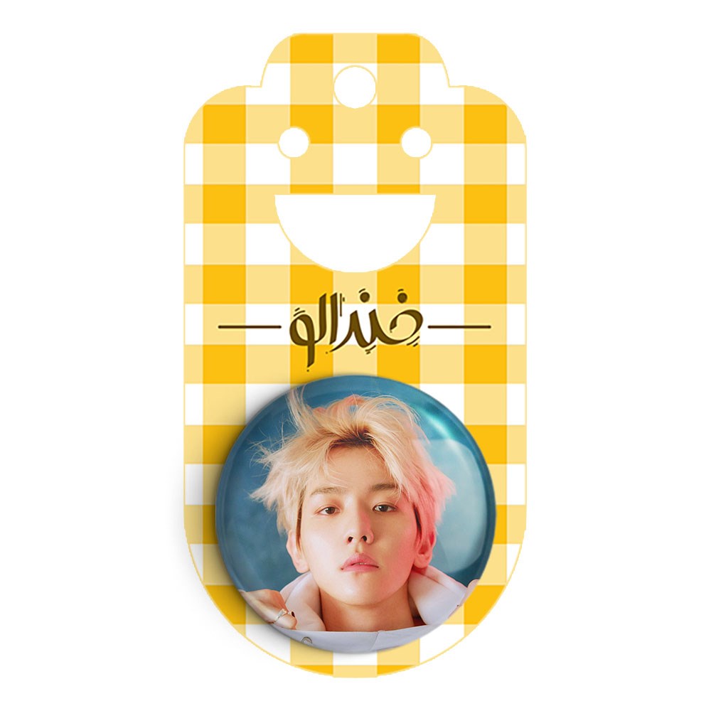 پیکسل 44 میلی متری بکهیون گروه موسیقی اکسو EXO خندالو با روکش سلفون حرارتی مات مخملی ضدخش و قطعه پشتی رنگی تولید شده است.پلاستیکی پشت پیکسل با سوزن یک تکه ثابت و بدون لغزش و جا به جایی، ایستایی بسیار بهتری نسبت به پشتی فلزی پیکسل دارند که این مهم در تولید این محصول نیز رعایت شده است.