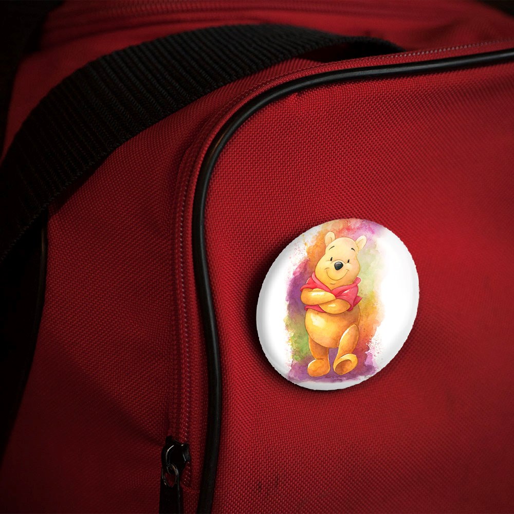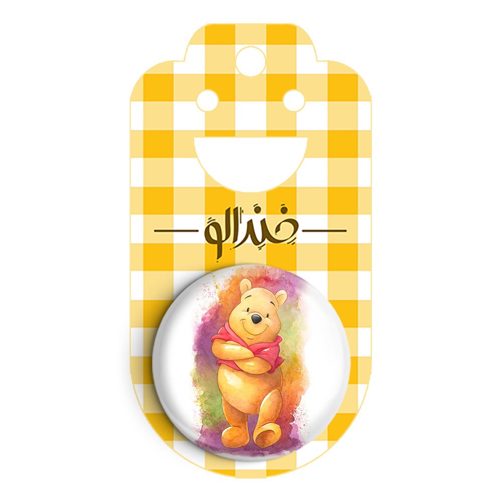 پیکسل 44 میلی متری خرس پو Winnie The Pooh خندالو با روکش سلفون حرارتی مات مخملی ضدخش و قطعه پشتی رنگی تولید شده است.پلاستیکی پشت پیکسل با سوزن یک تکه ثابت و بدون لغزش و جا به جایی، ایستایی بسیار بهتری نسبت به پشتی فلزی پیکسل دارند که این مهم در تولید این محصول نیز رعایت شده است.