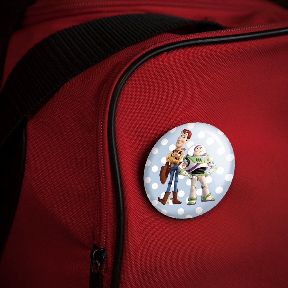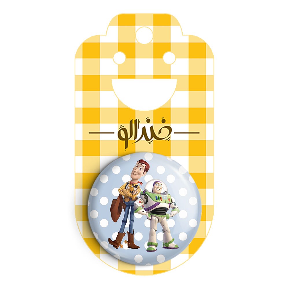 پیکسل 44 میلی متری داستان اسباب بازی Toy Story خندالو با روکش سلفون حرارتی مات مخملی ضدخش و قطعه پشتی رنگی تولید شده است.پلاستیکی پشت پیکسل با سوزن یک تکه ثابت و بدون لغزش و جا به جایی، ایستایی بسیار بهتری نسبت به پشتی فلزی پیکسل دارند که این مهم در تولید این محصول نیز رعایت شده است.