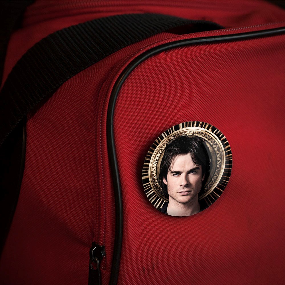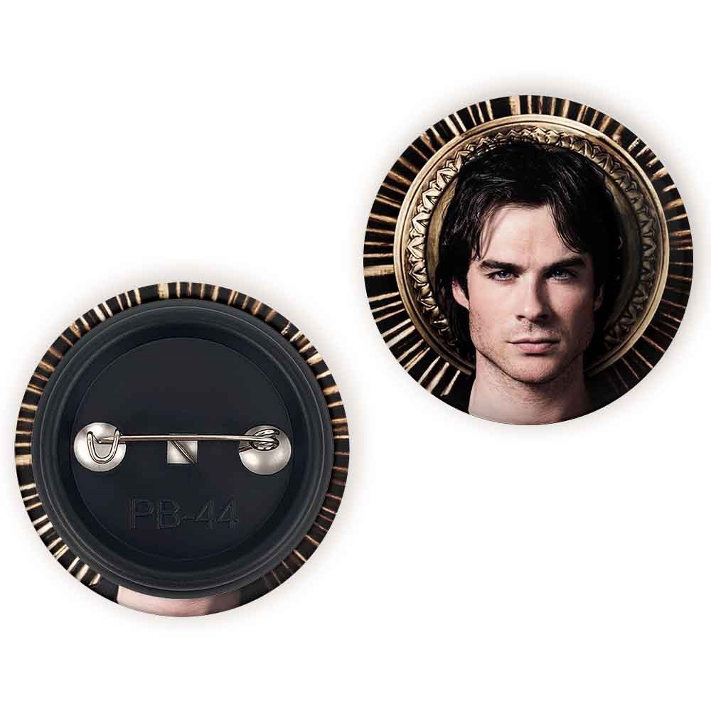 پیکسل 44 میلی متری دیمون خاطرات یک خون آشام The Vampire Diaries خندالو با روکش سلفون حرارتی مات مخملی ضدخش و قطعه پشتی رنگی تولید شده است.پلاستیکی پشت پیکسل با سوزن یک تکه ثابت و بدون لغزش و جا به جایی، ایستایی بسیار بهتری نسبت به پشتی فلزی پیکسل دارند که این مهم در تولید این محصول نیز رعایت شده است.