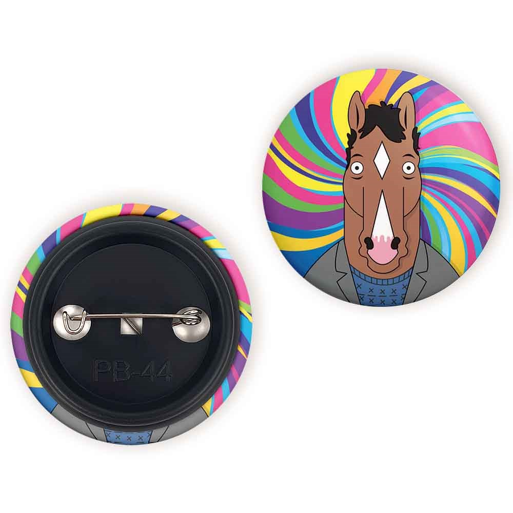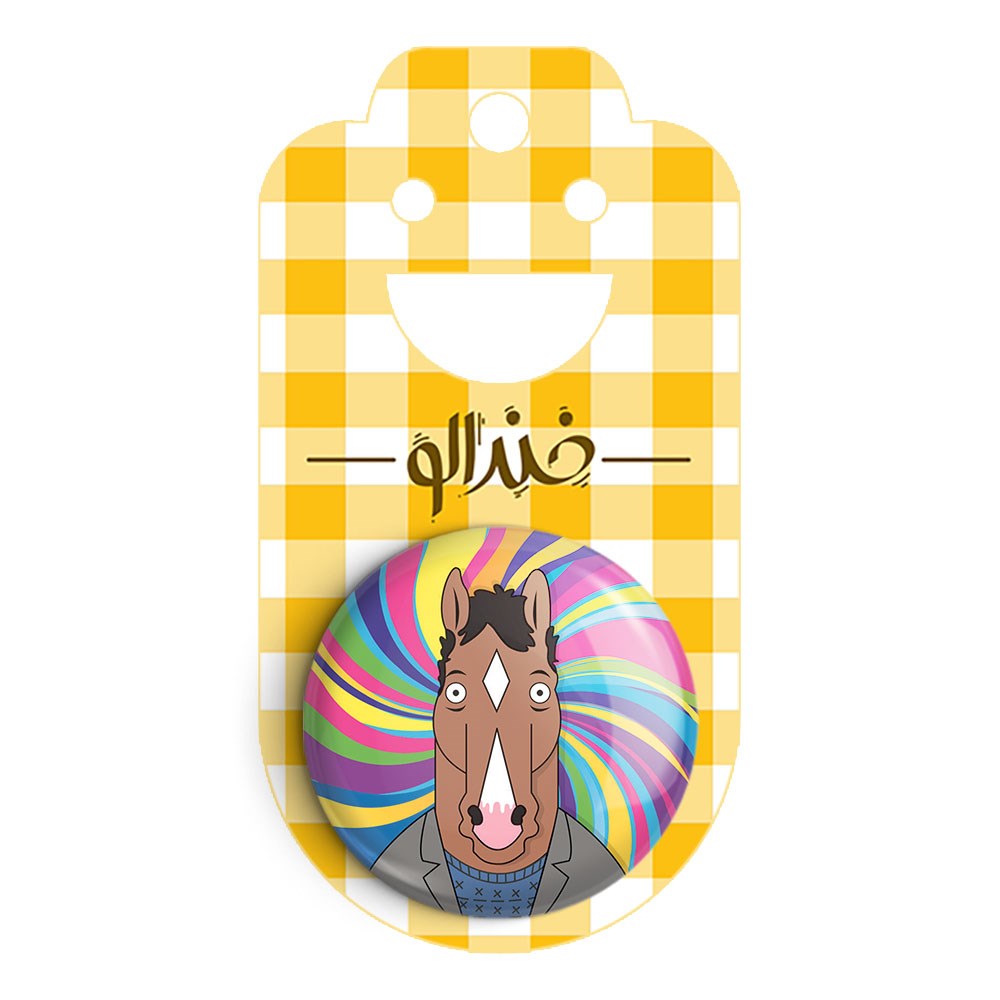 پیکسل 44 میلی متری سریال بوجک هورسمن Bojack Horseman خندالو با روکش سلفون حرارتی مات مخملی ضدخش و قطعه پشتی رنگی تولید شده است.پلاستیکی پشت پیکسل با سوزن یک تکه ثابت و بدون لغزش و جا به جایی، ایستایی بسیار بهتری نسبت به پشتی فلزی پیکسل دارند که این مهم در تولید این محصول نیز رعایت شده است.