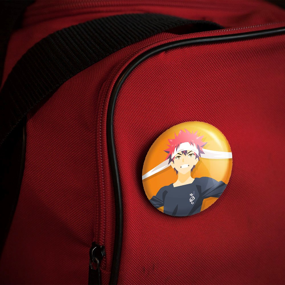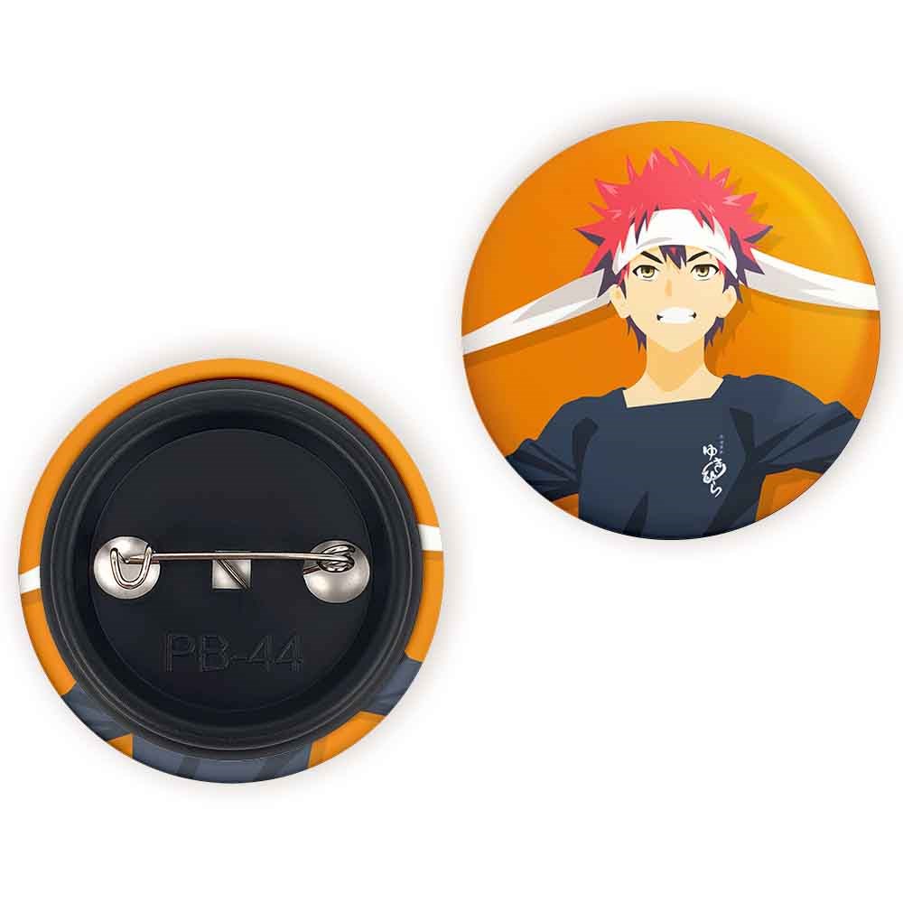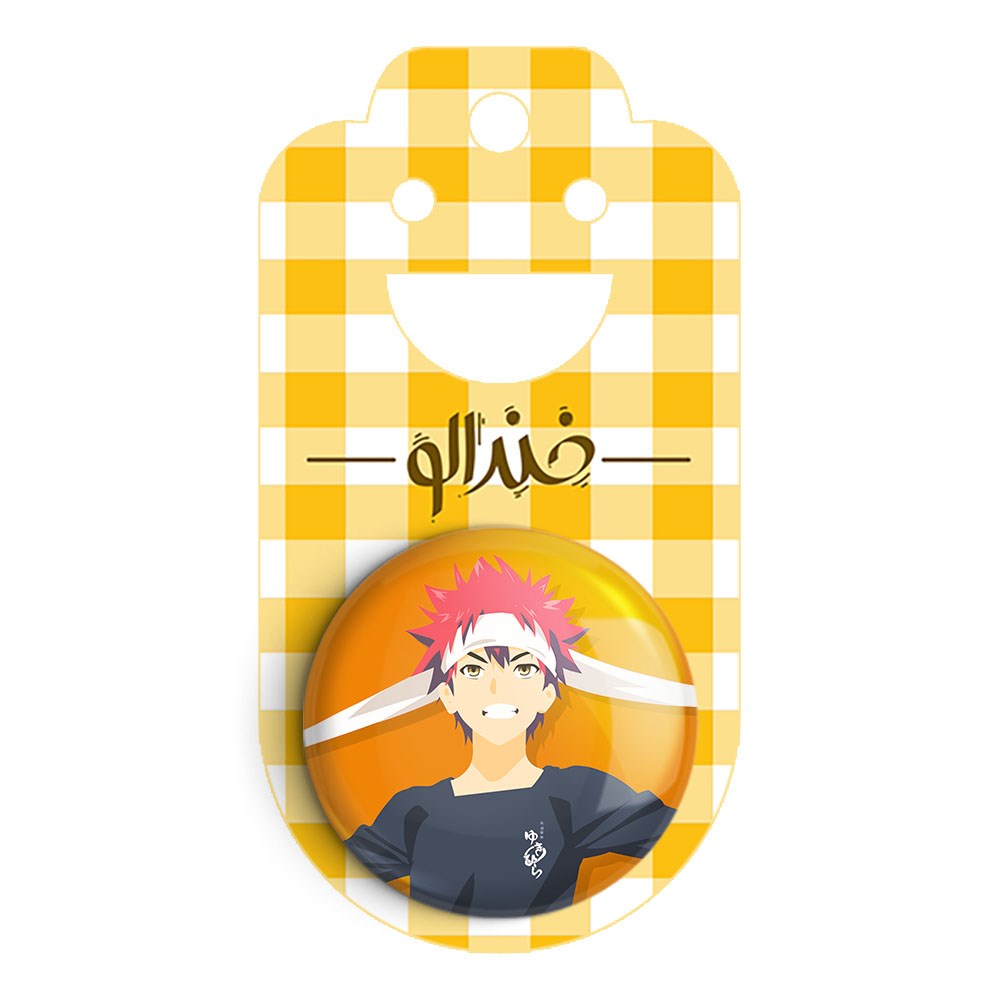 پیکسل 44 میلی متری سوما انیمه جنگ غذاها Food Wars خندالو با روکش سلفون حرارتی مات مخملی ضدخش و قطعه پشتی رنگی تولید شده است.پلاستیکی پشت پیکسل با سوزن یک تکه ثابت و بدون لغزش و جا به جایی، ایستایی بسیار بهتری نسبت به پشتی فلزی پیکسل دارند که این مهم در تولید این محصول نیز رعایت شده است.