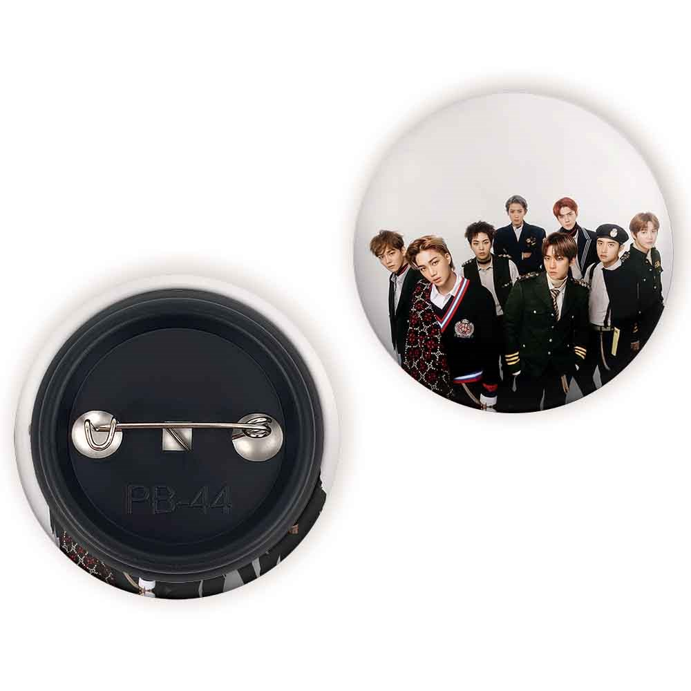 پیکسل 44 میلی متری گروه اکسو EXO خندالو با روکش سلفون حرارتی مات مخملی ضدخش و قطعه پشتی رنگی تولید شده است.پلاستیکی پشت پیکسل با سوزن یک تکه ثابت و بدون لغزش و جا به جایی، ایستایی بسیار بهتری نسبت به پشتی فلزی پیکسل دارند که این مهم در تولید این محصول نیز رعایت شده است.