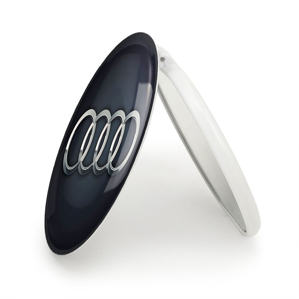 آینه های تاشو آئودی Audi خندالو، از جنس پلاستیک فشرده ABS تولید شده و به رنگ سفید می باشد. یکی از آینه ها ابعاد واقعی را نشان داده و دیگری با قابلیت بزرگنمایی، جزئیات را بهتر نمایش می دهد.