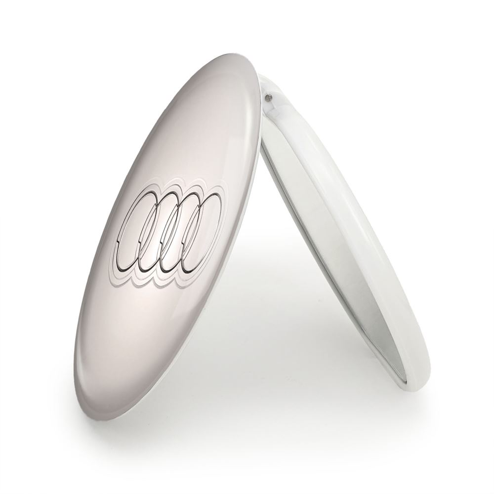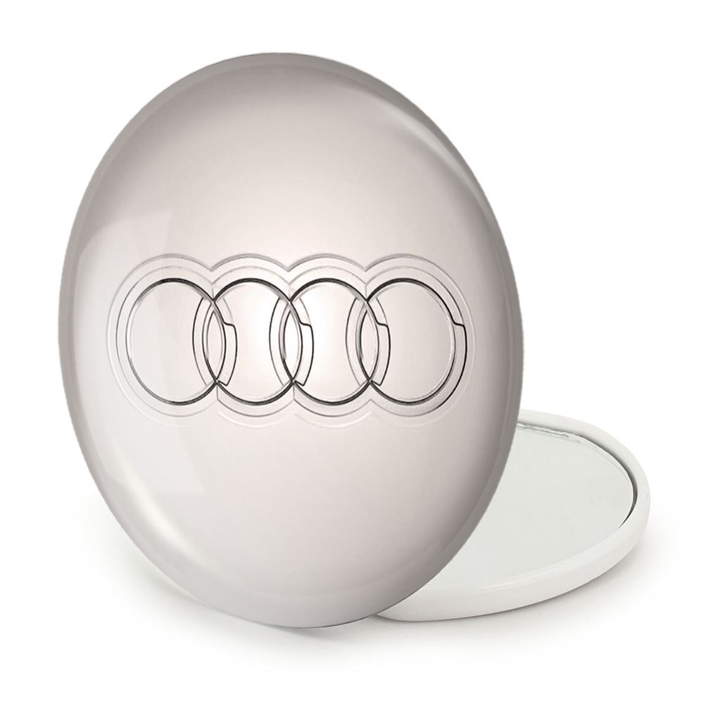 آینه های تاشو آئودی Audi خندالو، از جنس پلاستیک فشرده ABS تولید شده و به رنگ سفید می باشد. یکی از آینه ها ابعاد واقعی را نشان داده و دیگری با قابلیت بزرگنمایی، جزئیات را بهتر نمایش می دهد.