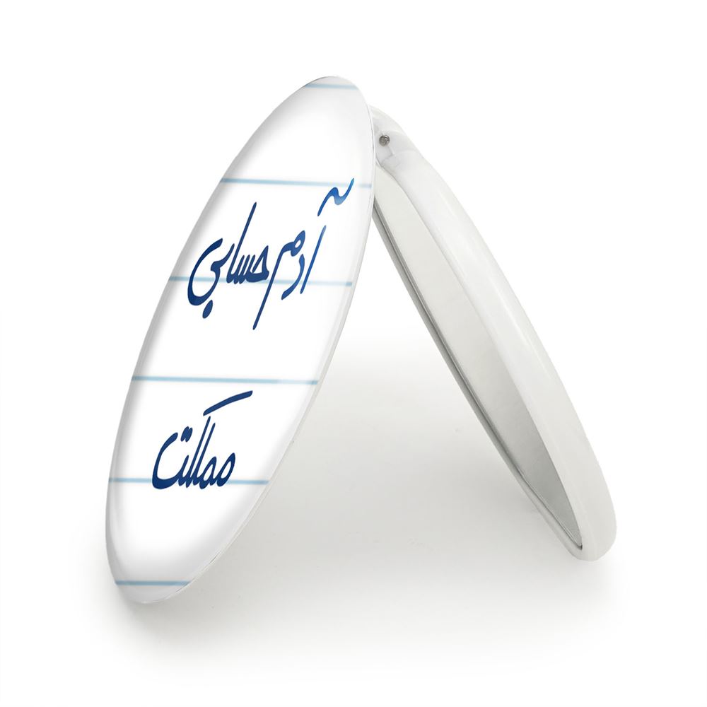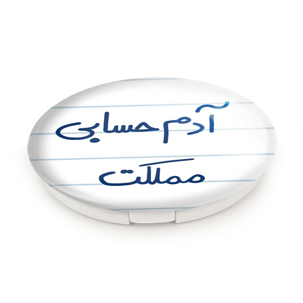 آینه های تاشو آدم حسابی مملکت خندالو، از جنس پلاستیک فشرده ABS تولید شده و به رنگ سفید می باشد. یکی از آینه ها ابعاد واقعی را نشان داده و دیگری با قابلیت بزرگنمایی، جزئیات را بهتر نمایش می دهد. ابعاد هر یک از آینه ها، دایره ای به قطر 7.5 سانت می باشد که نه خیلی بزرگ و غیر قابل استفاده در کیف آرایشی ست و نه خیلی کوچک که تصویر خاصی در آن مشاهده نشود. آینه تاشو آدم حسابی مملکت سایزی استاندارد و کارآمد دارد و در هر کیفی جا میگیرد. چاپ طرح بوسیله چاپگرهای دیجیتال شش رنگ با شفافیت و کیفیتی مثال زدنی بر روی یک وجه از بدنه ی آینه انجام گرفته و با روکش لمینت حرارتی پوشیده شده که در مقابل آسیب و خط و خش مقاوم بوده و کیفیت بالایی دارد. درب آینه بوسیله قفل بدنه ی آن، باز نمی ماند و کاملا بسته می شود و مناسب قرار گیری در کیف لوازم آرایش و کیف های کوچک دستی نیز هست. آینه های تاشو آدم حسابی مملکت خندالو با تنوع طرحی بسیار بالا، سلیقه هر نوع مخاطبی را تامین میکند.
