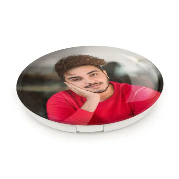 آینه های تاشو آرون افشار خندالو، از جنس پلاستیک فشرده ABS تولید شده و به رنگ سفید می باشد. یکی از آینه ها ابعاد واقعی را نشان داده و دیگری با قابلیت بزرگنمایی، جزئیات را بهتر نمایش می دهد. ابعاد هر یک از آینه ها، دایره ای به قطر 7.5 سانت می باشد که نه خیلی بزرگ و غیر قابل استفاده در کیف آرایشی ست و نه خیلی کوچک که تصویر خاصی در آن مشاهده نشود. آینه تاشو آرون افشار سایزی استاندارد و کارآمد دارد و در هر کیفی جا میگیرد. چاپ طرح بوسیله چاپگرهای دیجیتال شش رنگ با شفافیت و کیفیتی مثال زدنی بر روی یک وجه از بدنه ی آینه انجام گرفته و با روکش لمینت حرارتی پوشیده شده که در مقابل آسیب و خط و خش مقاوم بوده و کیفیت بالایی دارد. درب آینه بوسیله قفل بدنه ی آن، باز نمی ماند و کاملا بسته می شود و مناسب قرار گیری در کیف لوازم آرایش و کیف های کوچک دستی نیز هست. آینه های تاشو آرون افشار خندالو با تنوع طرحی بسیار بالا، سلیقه هر نوع مخاطبی را تامین میکند.