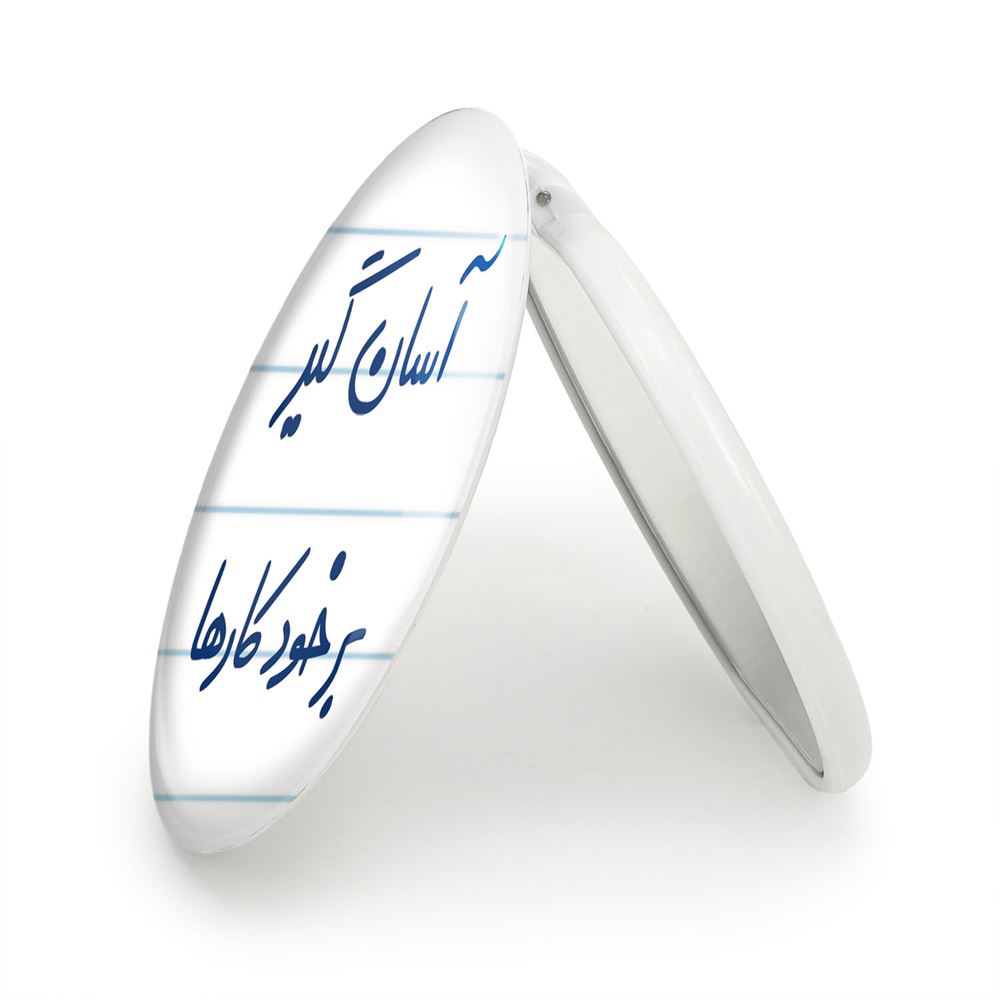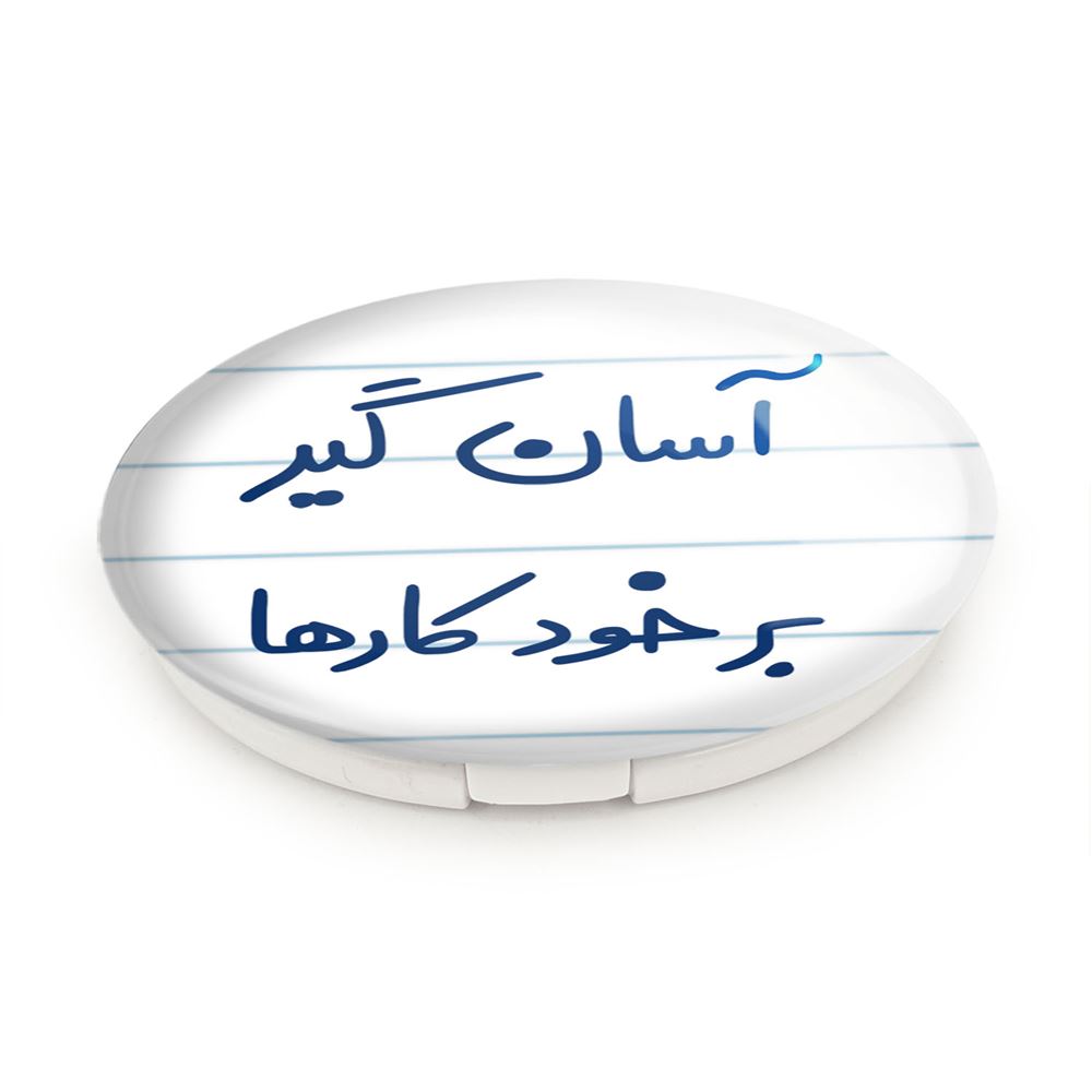 آینه های تاشو آسان گیر بر خود کارها خندالو، از جنس پلاستیک فشرده ABS تولید شده و به رنگ سفید می باشد. یکی از آینه ها ابعاد واقعی را نشان داده و دیگری با قابلیت بزرگنمایی، جزئیات را بهتر نمایش می دهد. ابعاد هر یک از آینه ها، دایره ای به قطر 7.5 سانت می باشد که نه خیلی بزرگ و غیر قابل استفاده در کیف آرایشی ست و نه خیلی کوچک که تصویر خاصی در آن مشاهده نشود. آینه تاشو آسان گیر بر خود کارها سایزی استاندارد و کارآمد دارد و در هر کیفی جا میگیرد. چاپ طرح بوسیله چاپگرهای دیجیتال شش رنگ با شفافیت و کیفیتی مثال زدنی بر روی یک وجه از بدنه ی آینه انجام گرفته و با روکش لمینت حرارتی پوشیده شده که در مقابل آسیب و خط و خش مقاوم بوده و کیفیت بالایی دارد. درب آینه بوسیله قفل بدنه ی آن، باز نمی ماند و کاملا بسته می شود و مناسب قرار گیری در کیف لوازم آرایش و کیف های کوچک دستی نیز هست. آینه های تاشو آسان گیر بر خود کارها خندالو با تنوع طرحی بسیار بالا، سلیقه هر نوع مخاطبی را تامین میکند.