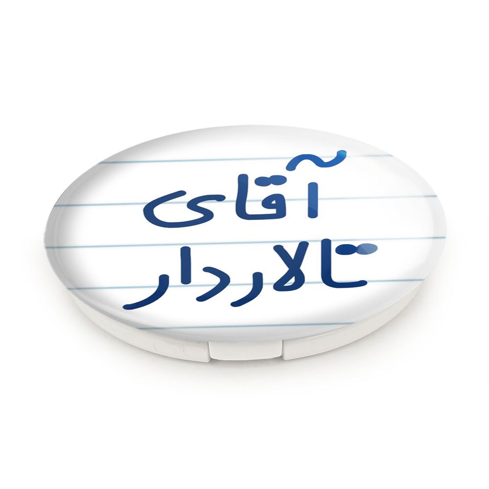 آینه های تاشو آقای تالاردار خندالو، از جنس پلاستیک فشرده ABS تولید شده و به رنگ سفید می باشد. یکی از آینه ها ابعاد واقعی را نشان داده و دیگری با قابلیت بزرگنمایی، جزئیات را بهتر نمایش می دهد. ابعاد هر یک از آینه ها، دایره ای به قطر 7.5 سانت می باشد که نه خیلی بزرگ و غیر قابل استفاده در کیف آرایشی ست و نه خیلی کوچک که تصویر خاصی در آن مشاهده نشود. آینه تاشو آقای تالاردار سایزی استاندارد و کارآمد دارد و در هر کیفی جا میگیرد. چاپ طرح بوسیله چاپگرهای دیجیتال شش رنگ با شفافیت و کیفیتی مثال زدنی بر روی یک وجه از بدنه ی آینه انجام گرفته و با روکش لمینت حرارتی پوشیده شده که در مقابل آسیب و خط و خش مقاوم بوده و کیفیت بالایی دارد. درب آینه بوسیله قفل بدنه ی آن، باز نمی ماند و کاملا بسته می شود و مناسب قرار گیری در کیف لوازم آرایش و کیف های کوچک دستی نیز هست. آینه های تاشو آقای تالاردار خندالو با تنوع طرحی بسیار بالا، سلیقه هر نوع مخاطبی را تامین میکند.