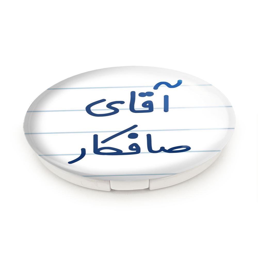 آینه های تاشو آقای صافکار خندالو، از جنس پلاستیک فشرده ABS تولید شده و به رنگ سفید می باشد. یکی از آینه ها ابعاد واقعی را نشان داده و دیگری با قابلیت بزرگنمایی، جزئیات را بهتر نمایش می دهد. ابعاد هر یک از آینه ها، دایره ای به قطر 7.5 سانت می باشد که نه خیلی بزرگ و غیر قابل استفاده در کیف آرایشی ست و نه خیلی کوچک که تصویر خاصی در آن مشاهده نشود. آینه تاشو آقای صافکار سایزی استاندارد و کارآمد دارد و در هر کیفی جا میگیرد. چاپ طرح بوسیله چاپگرهای دیجیتال شش رنگ با شفافیت و کیفیتی مثال زدنی بر روی یک وجه از بدنه ی آینه انجام گرفته و با روکش لمینت حرارتی پوشیده شده که در مقابل آسیب و خط و خش مقاوم بوده و کیفیت بالایی دارد. درب آینه بوسیله قفل بدنه ی آن، باز نمی ماند و کاملا بسته می شود و مناسب قرار گیری در کیف لوازم آرایش و کیف های کوچک دستی نیز هست. آینه های تاشو آقای صافکار خندالو با تنوع طرحی بسیار بالا، سلیقه هر نوع مخاطبی را تامین میکند.