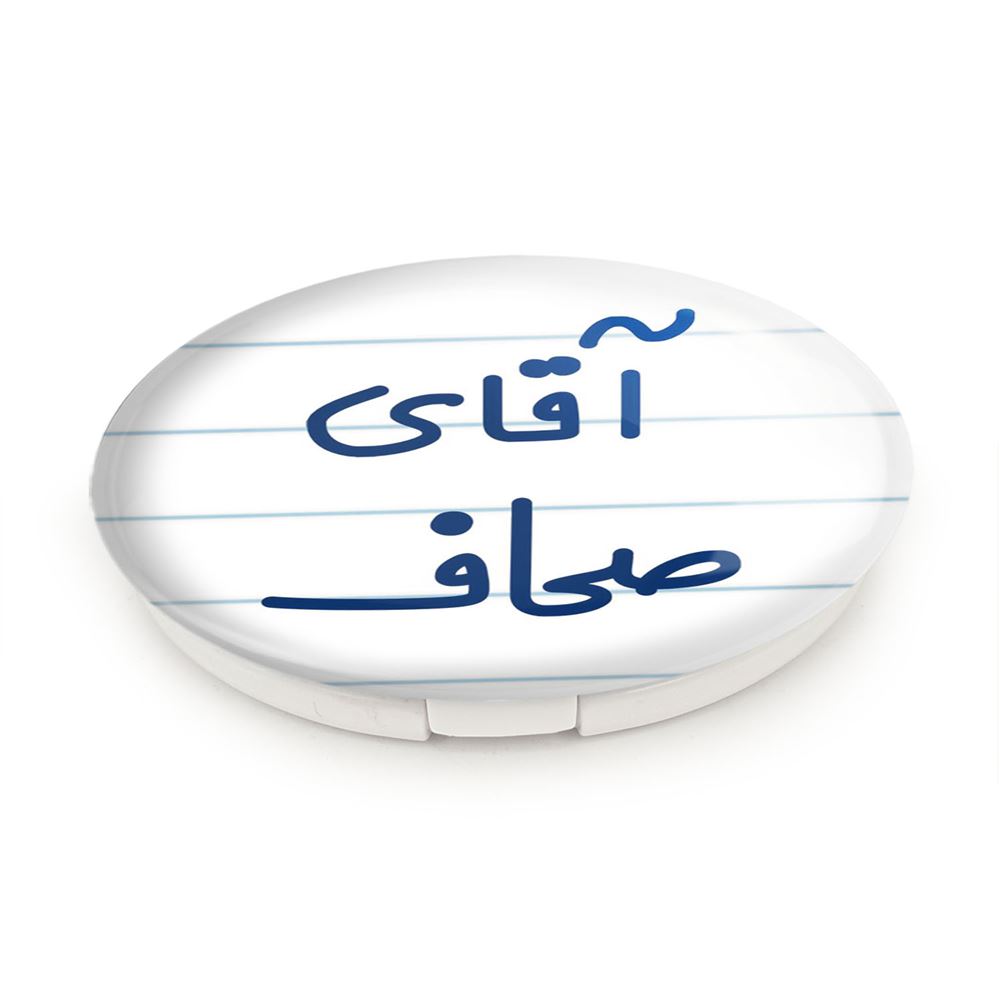 آینه های تاشو آقای صحاف خندالو، از جنس پلاستیک فشرده ABS تولید شده و به رنگ سفید می باشد. یکی از آینه ها ابعاد واقعی را نشان داده و دیگری با قابلیت بزرگنمایی، جزئیات را بهتر نمایش می دهد. ابعاد هر یک از آینه ها، دایره ای به قطر 7.5 سانت می باشد که نه خیلی بزرگ و غیر قابل استفاده در کیف آرایشی ست و نه خیلی کوچک که تصویر خاصی در آن مشاهده نشود. آینه تاشو آقای صحاف سایزی استاندارد و کارآمد دارد و در هر کیفی جا میگیرد. چاپ طرح بوسیله چاپگرهای دیجیتال شش رنگ با شفافیت و کیفیتی مثال زدنی بر روی یک وجه از بدنه ی آینه انجام گرفته و با روکش لمینت حرارتی پوشیده شده که در مقابل آسیب و خط و خش مقاوم بوده و کیفیت بالایی دارد. درب آینه بوسیله قفل بدنه ی آن، باز نمی ماند و کاملا بسته می شود و مناسب قرار گیری در کیف لوازم آرایش و کیف های کوچک دستی نیز هست. آینه های تاشو آقای صحاف خندالو با تنوع طرحی بسیار بالا، سلیقه هر نوع مخاطبی را تامین میکند.