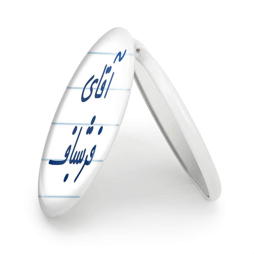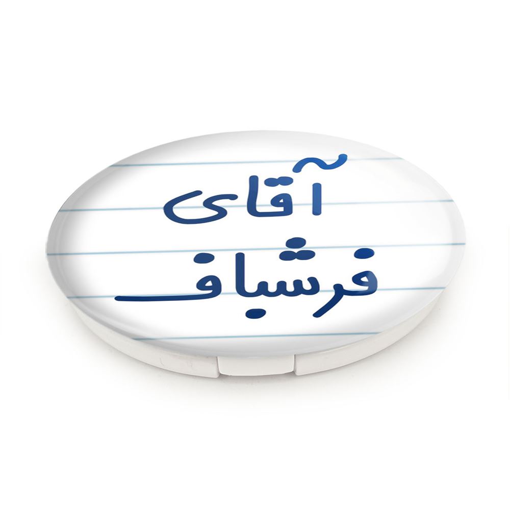 آینه های تاشو آقای فرشباف خندالو، از جنس پلاستیک فشرده ABS تولید شده و به رنگ سفید می باشد. یکی از آینه ها ابعاد واقعی را نشان داده و دیگری با قابلیت بزرگنمایی، جزئیات را بهتر نمایش می دهد. ابعاد هر یک از آینه ها، دایره ای به قطر 7.5 سانت می باشد که نه خیلی بزرگ و غیر قابل استفاده در کیف آرایشی ست و نه خیلی کوچک که تصویر خاصی در آن مشاهده نشود. آینه تاشو آقای فرشباف سایزی استاندارد و کارآمد دارد و در هر کیفی جا میگیرد. چاپ طرح بوسیله چاپگرهای دیجیتال شش رنگ با شفافیت و کیفیتی مثال زدنی بر روی یک وجه از بدنه ی آینه انجام گرفته و با روکش لمینت حرارتی پوشیده شده که در مقابل آسیب و خط و خش مقاوم بوده و کیفیت بالایی دارد. درب آینه بوسیله قفل بدنه ی آن، باز نمی ماند و کاملا بسته می شود و مناسب قرار گیری در کیف لوازم آرایش و کیف های کوچک دستی نیز هست. آینه های تاشو آقای فرشباف خندالو با تنوع طرحی بسیار بالا، سلیقه هر نوع مخاطبی را تامین میکند.