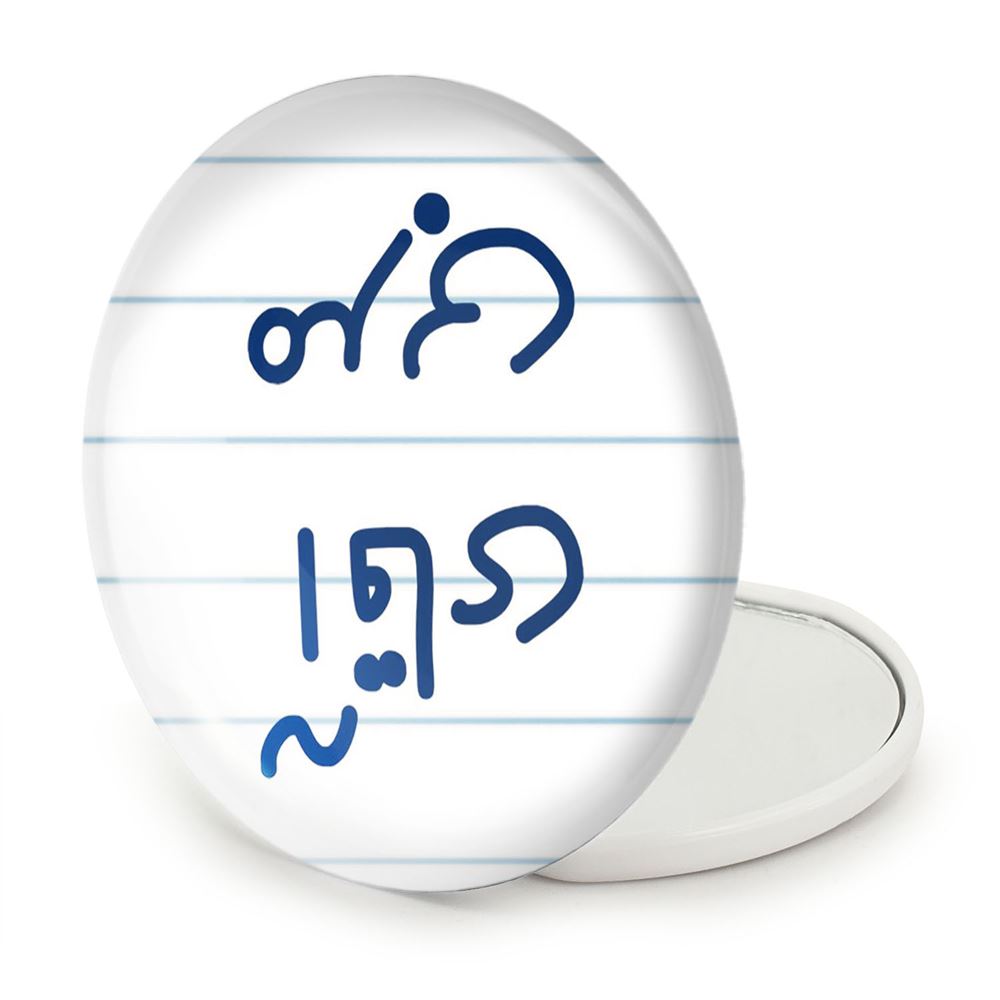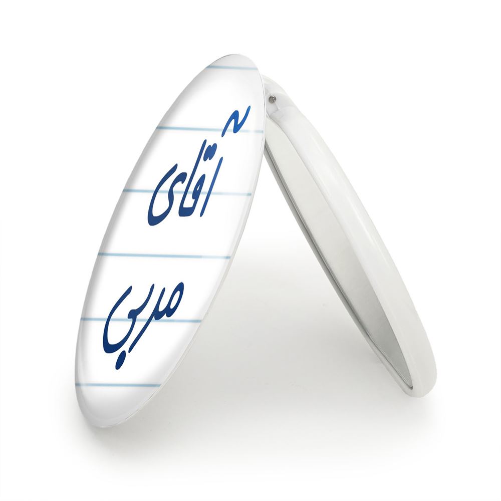 آینه های تاشو آقای مربی خندالو، از جنس پلاستیک فشرده ABS تولید شده و به رنگ سفید می باشد. یکی از آینه ها ابعاد واقعی را نشان داده و دیگری با قابلیت بزرگنمایی، جزئیات را بهتر نمایش می دهد. ابعاد هر یک از آینه ها، دایره ای به قطر 7.5 سانت می باشد که نه خیلی بزرگ و غیر قابل استفاده در کیف آرایشی ست و نه خیلی کوچک که تصویر خاصی در آن مشاهده نشود. آینه تاشو آقای مربی سایزی استاندارد و کارآمد دارد و در هر کیفی جا میگیرد. چاپ طرح بوسیله چاپگرهای دیجیتال شش رنگ با شفافیت و کیفیتی مثال زدنی بر روی یک وجه از بدنه ی آینه انجام گرفته و با روکش لمینت حرارتی پوشیده شده که در مقابل آسیب و خط و خش مقاوم بوده و کیفیت بالایی دارد. درب آینه بوسیله قفل بدنه ی آن، باز نمی ماند و کاملا بسته می شود و مناسب قرار گیری در کیف لوازم آرایش و کیف های کوچک دستی نیز هست. آینه های تاشو آقای مربی خندالو با تنوع طرحی بسیار بالا، سلیقه هر نوع مخاطبی را تامین میکند.