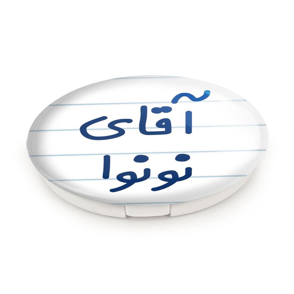 آینه های تاشو آقای نونوا خندالو، از جنس پلاستیک فشرده ABS تولید شده و به رنگ سفید می باشد. یکی از آینه ها ابعاد واقعی را نشان داده و دیگری با قابلیت بزرگنمایی، جزئیات را بهتر نمایش می دهد. ابعاد هر یک از آینه ها، دایره ای به قطر 7.5 سانت می باشد که نه خیلی بزرگ و غیر قابل استفاده در کیف آرایشی ست و نه خیلی کوچک که تصویر خاصی در آن مشاهده نشود. آینه تاشو آقای نونوا سایزی استاندارد و کارآمد دارد و در هر کیفی جا میگیرد. چاپ طرح بوسیله چاپگرهای دیجیتال شش رنگ با شفافیت و کیفیتی مثال زدنی بر روی یک وجه از بدنه ی آینه انجام گرفته و با روکش لمینت حرارتی پوشیده شده که در مقابل آسیب و خط و خش مقاوم بوده و کیفیت بالایی دارد. درب آینه بوسیله قفل بدنه ی آن، باز نمی ماند و کاملا بسته می شود و مناسب قرار گیری در کیف لوازم آرایش و کیف های کوچک دستی نیز هست. آینه های تاشو آقای نونوا خندالو با تنوع طرحی بسیار بالا، سلیقه هر نوع مخاطبی را تامین میکند.