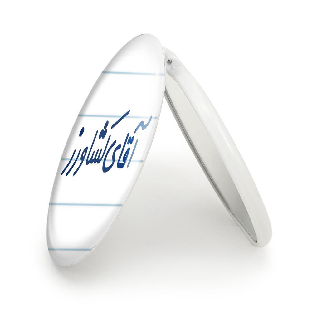 آینه های تاشو آقای کشاورز خندالو، از جنس پلاستیک فشرده ABS تولید شده و به رنگ سفید می باشد. یکی از آینه ها ابعاد واقعی را نشان داده و دیگری با قابلیت بزرگنمایی، جزئیات را بهتر نمایش می دهد. ابعاد هر یک از آینه ها، دایره ای به قطر 7.5 سانت می باشد که نه خیلی بزرگ و غیر قابل استفاده در کیف آرایشی ست و نه خیلی کوچک که تصویر خاصی در آن مشاهده نشود. آینه تاشو آقای کشاورز سایزی استاندارد و کارآمد دارد و در هر کیفی جا میگیرد. چاپ طرح بوسیله چاپگرهای دیجیتال شش رنگ با شفافیت و کیفیتی مثال زدنی بر روی یک وجه از بدنه ی آینه انجام گرفته و با روکش لمینت حرارتی پوشیده شده که در مقابل آسیب و خط و خش مقاوم بوده و کیفیت بالایی دارد. درب آینه بوسیله قفل بدنه ی آن، باز نمی ماند و کاملا بسته می شود و مناسب قرار گیری در کیف لوازم آرایش و کیف های کوچک دستی نیز هست. آینه های تاشو آقای کشاورز خندالو با تنوع طرحی بسیار بالا، سلیقه هر نوع مخاطبی را تامین میکند.