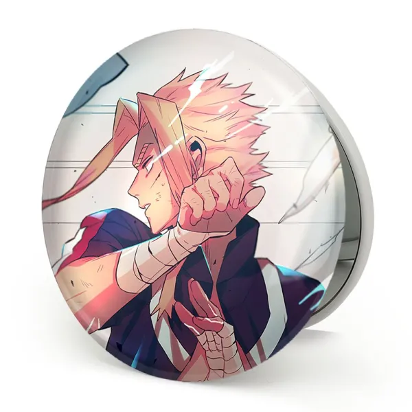 آینه های تاشو آلمایت انیمه آکادمی قهرمان من خندالو، از جنس پلاستیک فشرده ABS تولید شده و به رنگ سفید می باشد. یکی از آینه ها ابعاد واقعی را نشان داده و دیگری با قابلیت بزرگنمایی، جزئیات را بهتر نمایش می دهد. ابعاد هر یک از آینه ها، دایره ای به قطر 7.5 سانت می باشد که نه خیلی بزرگ و غیر قابل استفاده در کیف آرایشی ست و نه خیلی کوچک که تصویر خاصی در آن مشاهده نشود. آینه تاشو آلمایت انیمه آکادمی قهرمان من سایزی استاندارد و کارآمد دارد و در هر کیفی جا میگیرد. چاپ طرح بوسیله چاپگرهای دیجیتال شش رنگ با شفافیت و کیفیتی مثال زدنی بر روی یک وجه از بدنه ی آینه انجام گرفته و با روکش لمینت حرارتی پوشیده شده که در مقابل آسیب و خط و خش مقاوم بوده و کیفیت بالایی دارد. درب آینه بوسیله قفل بدنه ی آن، باز نمی ماند و کاملا بسته می شود و مناسب قرار گیری در کیف لوازم آرایش و کیف های کوچک دستی نیز هست. آینه های تاشو آلمایت انیمه آکادمی قهرمان من خندالو با تنوع طرحی بسیار بالا، سلیقه هر نوع مخاطبی را تامین میکند.