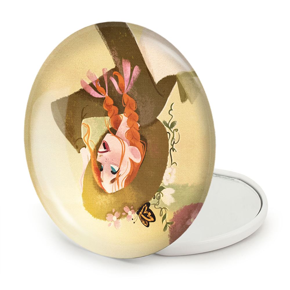 آینه های تاشو آن شرلی خندالو، از جنس پلاستیک فشرده ABS تولید شده و به رنگ سفید می باشد. یکی از آینه ها ابعاد واقعی را نشان داده و دیگری با قابلیت بزرگنمایی، جزئیات را بهتر نمایش می دهد. ابعاد هر یک از آینه ها، دایره ای به قطر 7.5 سانت می باشد که نه خیلی بزرگ و غیر قابل استفاده در کیف آرایشی ست و نه خیلی کوچک که تصویر خاصی در آن مشاهده نشود. آینه تاشو آن شرلی سایزی استاندارد و کارآمد دارد و در هر کیفی جا میگیرد. چاپ طرح بوسیله چاپگرهای دیجیتال شش رنگ با شفافیت و کیفیتی مثال زدنی بر روی یک وجه از بدنه ی آینه انجام گرفته و با روکش لمینت حرارتی پوشیده شده که در مقابل آسیب و خط و خش مقاوم بوده و کیفیت بالایی دارد. درب آینه بوسیله قفل بدنه ی آن، باز نمی ماند و کاملا بسته می شود و مناسب قرار گیری در کیف لوازم آرایش و کیف های کوچک دستی نیز هست. آینه های تاشو آن شرلی خندالو با تنوع طرحی بسیار بالا، سلیقه هر نوع مخاطبی را تامین میکند.