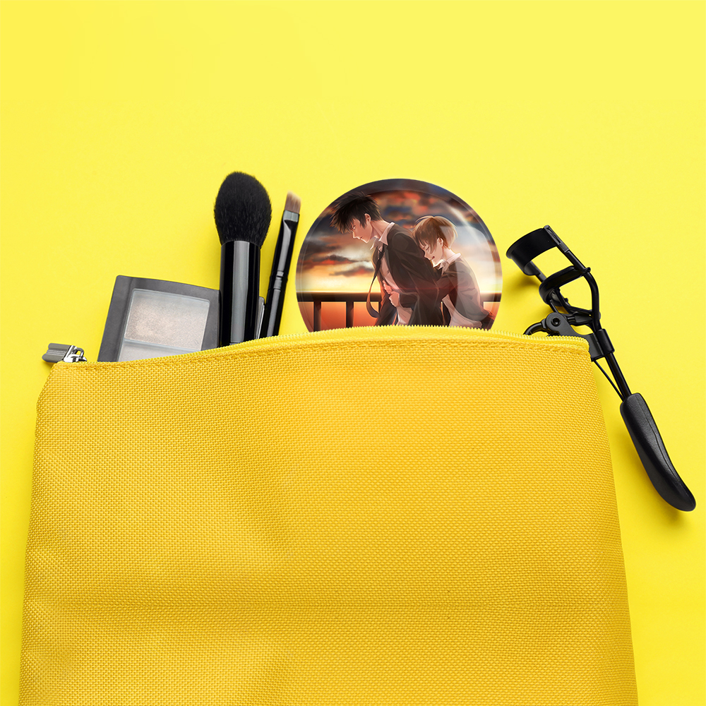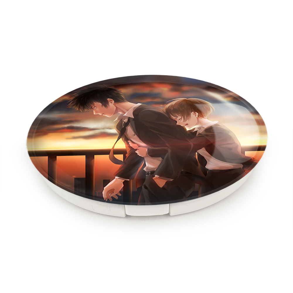 آینه های تاشو آکانه و کوگامی انیمه روان گذر خندالو، از جنس پلاستیک فشرده ABS تولید شده و به رنگ سفید می باشد. یکی از آینه ها ابعاد واقعی را نشان داده و دیگری با قابلیت بزرگنمایی، جزئیات را بهتر نمایش می دهد. ابعاد هر یک از آینه ها، دایره ای به قطر 7.5 سانت می باشد که نه خیلی بزرگ و غیر قابل استفاده در کیف آرایشی ست و نه خیلی کوچک که تصویر خاصی در آن مشاهده نشود. آینه تاشو آکانه و کوگامی انیمه روان گذر سایزی استاندارد و کارآمد دارد و در هر کیفی جا میگیرد. چاپ طرح بوسیله چاپگرهای دیجیتال شش رنگ با شفافیت و کیفیتی مثال زدنی بر روی یک وجه از بدنه ی آینه انجام گرفته و با روکش لمینت حرارتی پوشیده شده که در مقابل آسیب و خط و خش مقاوم بوده و کیفیت بالایی دارد. درب آینه بوسیله قفل بدنه ی آن، باز نمی ماند و کاملا بسته می شود و مناسب قرار گیری در کیف لوازم آرایش و کیف های کوچک دستی نیز هست. آینه های تاشو آکانه و کوگامی انیمه روان گذر خندالو با تنوع طرحی بسیار بالا، سلیقه هر نوع مخاطبی را تامین میکند.