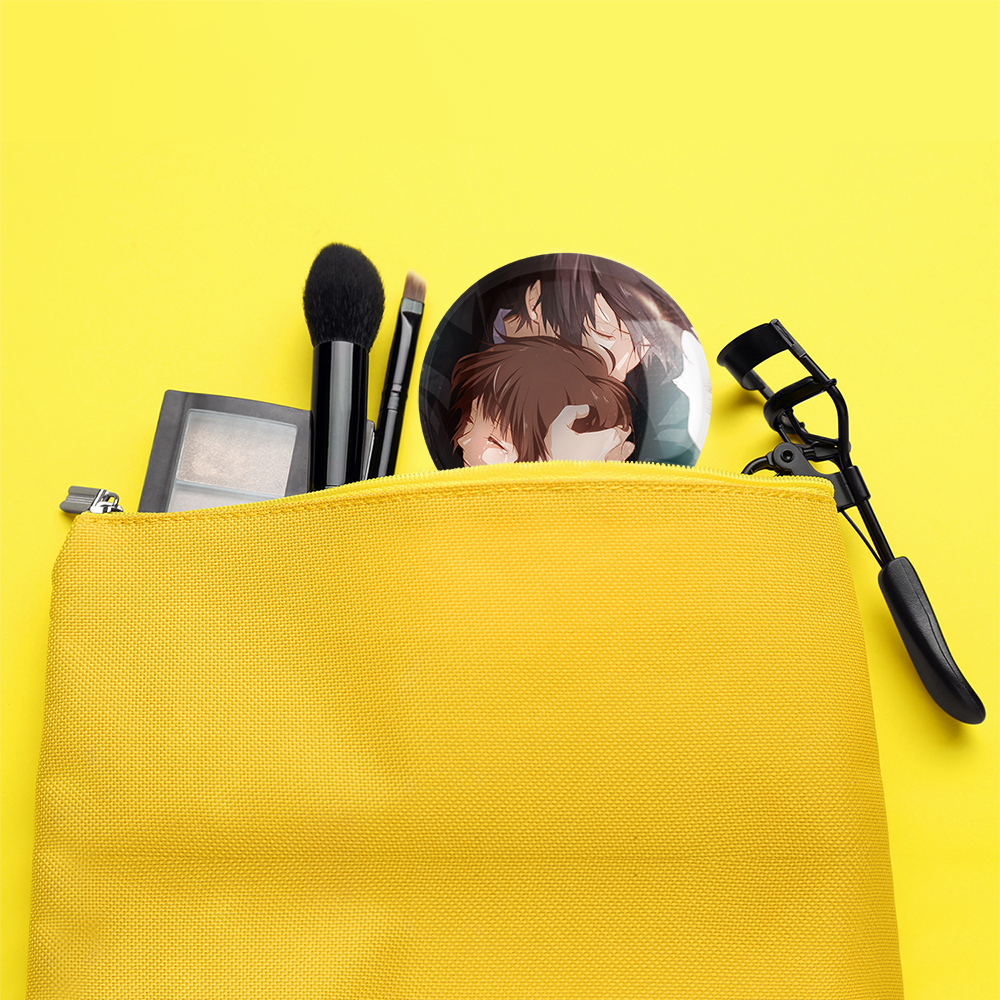 آینه های تاشو آکانه و کوگامی انیمه روان گذر خندالو، از جنس پلاستیک فشرده ABS تولید شده و به رنگ سفید می باشد. یکی از آینه ها ابعاد واقعی را نشان داده و دیگری با قابلیت بزرگنمایی، جزئیات را بهتر نمایش می دهد. ابعاد هر یک از آینه ها، دایره ای به قطر 7.5 سانت می باشد که نه خیلی بزرگ و غیر قابل استفاده در کیف آرایشی ست و نه خیلی کوچک که تصویر خاصی در آن مشاهده نشود. آینه تاشو آکانه و کوگامی انیمه روان گذر سایزی استاندارد و کارآمد دارد و در هر کیفی جا میگیرد. چاپ طرح بوسیله چاپگرهای دیجیتال شش رنگ با شفافیت و کیفیتی مثال زدنی بر روی یک وجه از بدنه ی آینه انجام گرفته و با روکش لمینت حرارتی پوشیده شده که در مقابل آسیب و خط و خش مقاوم بوده و کیفیت بالایی دارد. درب آینه بوسیله قفل بدنه ی آن، باز نمی ماند و کاملا بسته می شود و مناسب قرار گیری در کیف لوازم آرایش و کیف های کوچک دستی نیز هست. آینه های تاشو آکانه و کوگامی انیمه روان گذر خندالو با تنوع طرحی بسیار بالا، سلیقه هر نوع مخاطبی را تامین میکند.