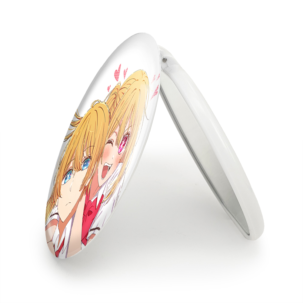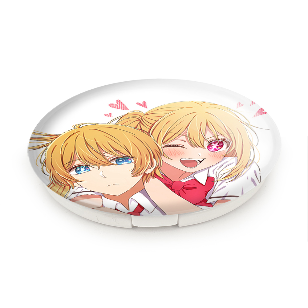 آینه های تاشو آکوا و روبی انیمه اوشی نو کو خندالو، از جنس پلاستیک فشرده ABS تولید شده و به رنگ سفید می باشد. یکی از آینه ها ابعاد واقعی را نشان داده و دیگری با قابلیت بزرگنمایی، جزئیات را بهتر نمایش می دهد. ابعاد هر یک از آینه ها، دایره ای به قطر 7.5 سانت می باشد که نه خیلی بزرگ و غیر قابل استفاده در کیف آرایشی ست و نه خیلی کوچک که تصویر خاصی در آن مشاهده نشود. آینه تاشو آکوا و روبی انیمه اوشی نو کو سایزی استاندارد و کارآمد دارد و در هر کیفی جا میگیرد. چاپ طرح بوسیله چاپگرهای دیجیتال شش رنگ با شفافیت و کیفیتی مثال زدنی بر روی یک وجه از بدنه ی آینه انجام گرفته و با روکش لمینت حرارتی پوشیده شده که در مقابل آسیب و خط و خش مقاوم بوده و کیفیت بالایی دارد. درب آینه بوسیله قفل بدنه ی آن، باز نمی ماند و کاملا بسته می شود و مناسب قرار گیری در کیف لوازم آرایش و کیف های کوچک دستی نیز هست. آینه های تاشو آکوا و روبی انیمه اوشی نو کو خندالو با تنوع طرحی بسیار بالا، سلیقه هر نوع مخاطبی را تامین میکند.