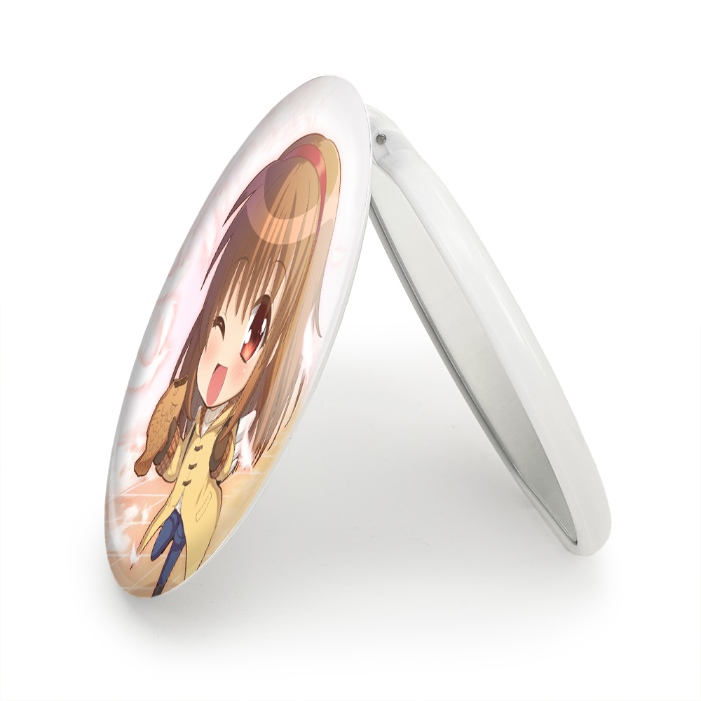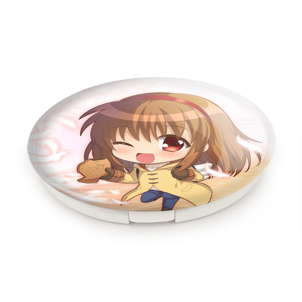 آینه های تاشو آیو انیمه آنجل بیتس خندالو، از جنس پلاستیک فشرده ABS تولید شده و به رنگ سفید می باشد. یکی از آینه ها ابعاد واقعی را نشان داده و دیگری با قابلیت بزرگنمایی، جزئیات را بهتر نمایش می دهد. ابعاد هر یک از آینه ها، دایره ای به قطر 7.5 سانت می باشد که نه خیلی بزرگ و غیر قابل استفاده در کیف آرایشی ست و نه خیلی کوچک که تصویر خاصی در آن مشاهده نشود. آینه تاشو آیو انیمه آنجل بیتس سایزی استاندارد و کارآمد دارد و در هر کیفی جا میگیرد. چاپ طرح بوسیله چاپگرهای دیجیتال شش رنگ با شفافیت و کیفیتی مثال زدنی بر روی یک وجه از بدنه ی آینه انجام گرفته و با روکش لمینت حرارتی پوشیده شده که در مقابل آسیب و خط و خش مقاوم بوده و کیفیت بالایی دارد. درب آینه بوسیله قفل بدنه ی آن، باز نمی ماند و کاملا بسته می شود و مناسب قرار گیری در کیف لوازم آرایش و کیف های کوچک دستی نیز هست. آینه های تاشو آیو انیمه آنجل بیتس خندالو با تنوع طرحی بسیار بالا، سلیقه هر نوع مخاطبی را تامین میکند.