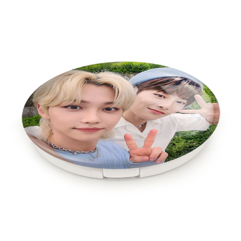 آینه های تاشو آی ان و فلیکس گروه استری کیدز Stary Kids خندالو، از جنس پلاستیک فشرده ABS تولید شده و به رنگ سفید می باشد. یکی از آینه ها ابعاد واقعی را نشان داده و دیگری با قابلیت بزرگنمایی، جزئیات را بهتر نمایش می دهد. ابعاد هر یک از آینه ها، دایره ای به قطر 7.5 سانت می باشد که نه خیلی بزرگ و غیر قابل استفاده در کیف آرایشی ست و نه خیلی کوچک که تصویر خاصی در آن مشاهده نشود. آینه تاشو آی ان و فلیکس گروه استری کیدز Stary Kids سایزی استاندارد و کارآمد دارد و در هر کیفی جا میگیرد. چاپ طرح بوسیله چاپگرهای دیجیتال شش رنگ با شفافیت و کیفیتی مثال زدنی بر روی یک وجه از بدنه ی آینه انجام گرفته و با روکش لمینت حرارتی پوشیده شده که در مقابل آسیب و خط و خش مقاوم بوده و کیفیت بالایی دارد. درب آینه بوسیله قفل بدنه ی آن، باز نمی ماند و کاملا بسته می شود و مناسب قرار گیری در کیف لوازم آرایش و کیف های کوچک دستی نیز هست. آینه های تاشو آی ان و فلیکس گروه استری کیدز Stary Kids خندالو با تنوع طرحی بسیار بالا، سلیقه هر نوع مخاطبی را تامین میکند.