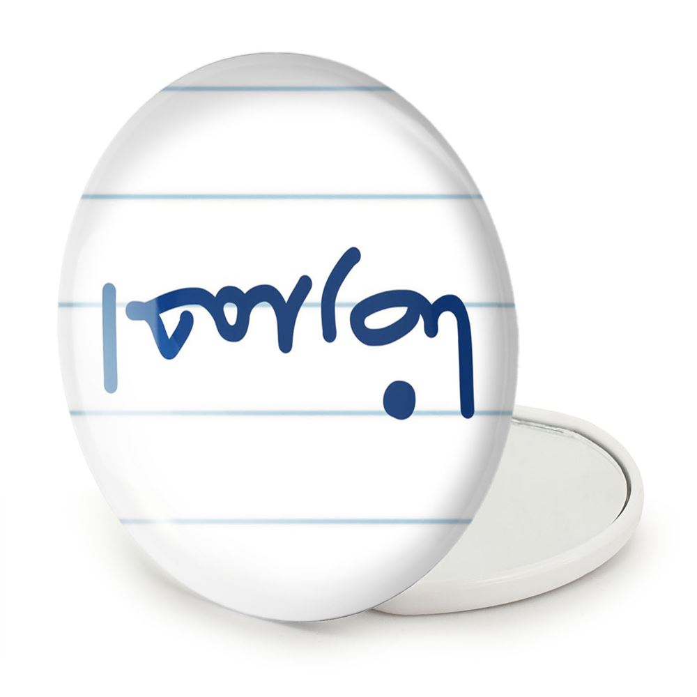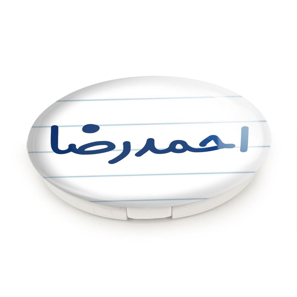 آینه های تاشو احمدرضا خندالو، از جنس پلاستیک فشرده ABS تولید شده و به رنگ سفید می باشد. یکی از آینه ها ابعاد واقعی را نشان داده و دیگری با قابلیت بزرگنمایی، جزئیات را بهتر نمایش می دهد. ابعاد هر یک از آینه ها، دایره ای به قطر 7.5 سانت می باشد که نه خیلی بزرگ و غیر قابل استفاده در کیف آرایشی ست و نه خیلی کوچک که تصویر خاصی در آن مشاهده نشود. آینه تاشو احمدرضا سایزی استاندارد و کارآمد دارد و در هر کیفی جا میگیرد. چاپ طرح بوسیله چاپگرهای دیجیتال شش رنگ با شفافیت و کیفیتی مثال زدنی بر روی یک وجه از بدنه ی آینه انجام گرفته و با روکش لمینت حرارتی پوشیده شده که در مقابل آسیب و خط و خش مقاوم بوده و کیفیت بالایی دارد. درب آینه بوسیله قفل بدنه ی آن، باز نمی ماند و کاملا بسته می شود و مناسب قرار گیری در کیف لوازم آرایش و کیف های کوچک دستی نیز هست. آینه های تاشو احمدرضا خندالو با تنوع طرحی بسیار بالا، سلیقه هر نوع مخاطبی را تامین میکند.