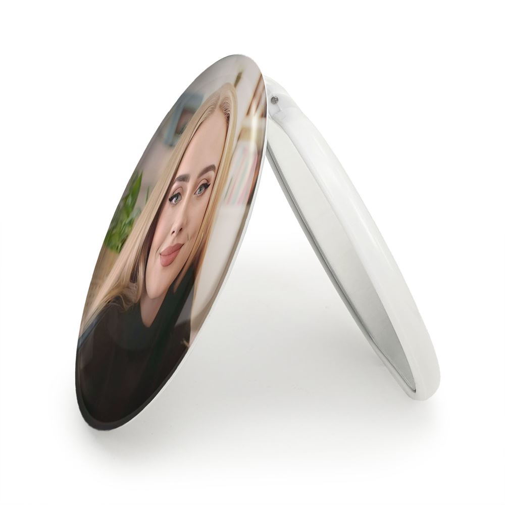 آینه های تاشو ادل Adele خندالو، از جنس پلاستیک فشرده ABS تولید شده و به رنگ سفید می باشد. یکی از آینه ها ابعاد واقعی را نشان داده و دیگری با قابلیت بزرگنمایی، جزئیات را بهتر نمایش می دهد. ابعاد هر یک از آینه ها، دایره ای به قطر 7.5 سانت می باشد که نه خیلی بزرگ و غیر قابل استفاده در کیف آرایشی ست و نه خیلی کوچک که تصویر خاصی در آن مشاهده نشود. آینه تاشو ادل Adele سایزی استاندارد و کارآمد دارد و در هر کیفی جا میگیرد. چاپ طرح بوسیله چاپگرهای دیجیتال شش رنگ با شفافیت و کیفیتی مثال زدنی بر روی یک وجه از بدنه ی آینه انجام گرفته و با روکش لمینت حرارتی پوشیده شده که در مقابل آسیب و خط و خش مقاوم بوده و کیفیت بالایی دارد. درب آینه بوسیله قفل بدنه ی آن، باز نمی ماند و کاملا بسته می شود و مناسب قرار گیری در کیف لوازم آرایش و کیف های کوچک دستی نیز هست. آینه های تاشو ادل Adele خندالو با تنوع طرحی بسیار بالا، سلیقه هر نوع مخاطبی را تامین میکند.