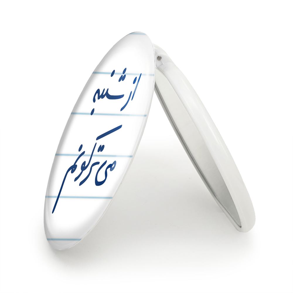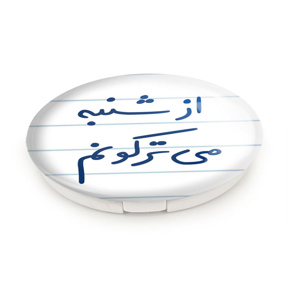 آینه های تاشو از شنبه می ترکونم خندالو، از جنس پلاستیک فشرده ABS تولید شده و به رنگ سفید می باشد. یکی از آینه ها ابعاد واقعی را نشان داده و دیگری با قابلیت بزرگنمایی، جزئیات را بهتر نمایش می دهد. ابعاد هر یک از آینه ها، دایره ای به قطر 7.5 سانت می باشد که نه خیلی بزرگ و غیر قابل استفاده در کیف آرایشی ست و نه خیلی کوچک که تصویر خاصی در آن مشاهده نشود. آینه تاشو از شنبه می ترکونم سایزی استاندارد و کارآمد دارد و در هر کیفی جا میگیرد. چاپ طرح بوسیله چاپگرهای دیجیتال شش رنگ با شفافیت و کیفیتی مثال زدنی بر روی یک وجه از بدنه ی آینه انجام گرفته و با روکش لمینت حرارتی پوشیده شده که در مقابل آسیب و خط و خش مقاوم بوده و کیفیت بالایی دارد. درب آینه بوسیله قفل بدنه ی آن، باز نمی ماند و کاملا بسته می شود و مناسب قرار گیری در کیف لوازم آرایش و کیف های کوچک دستی نیز هست. آینه های تاشو از شنبه می ترکونم خندالو با تنوع طرحی بسیار بالا، سلیقه هر نوع مخاطبی را تامین میکند.