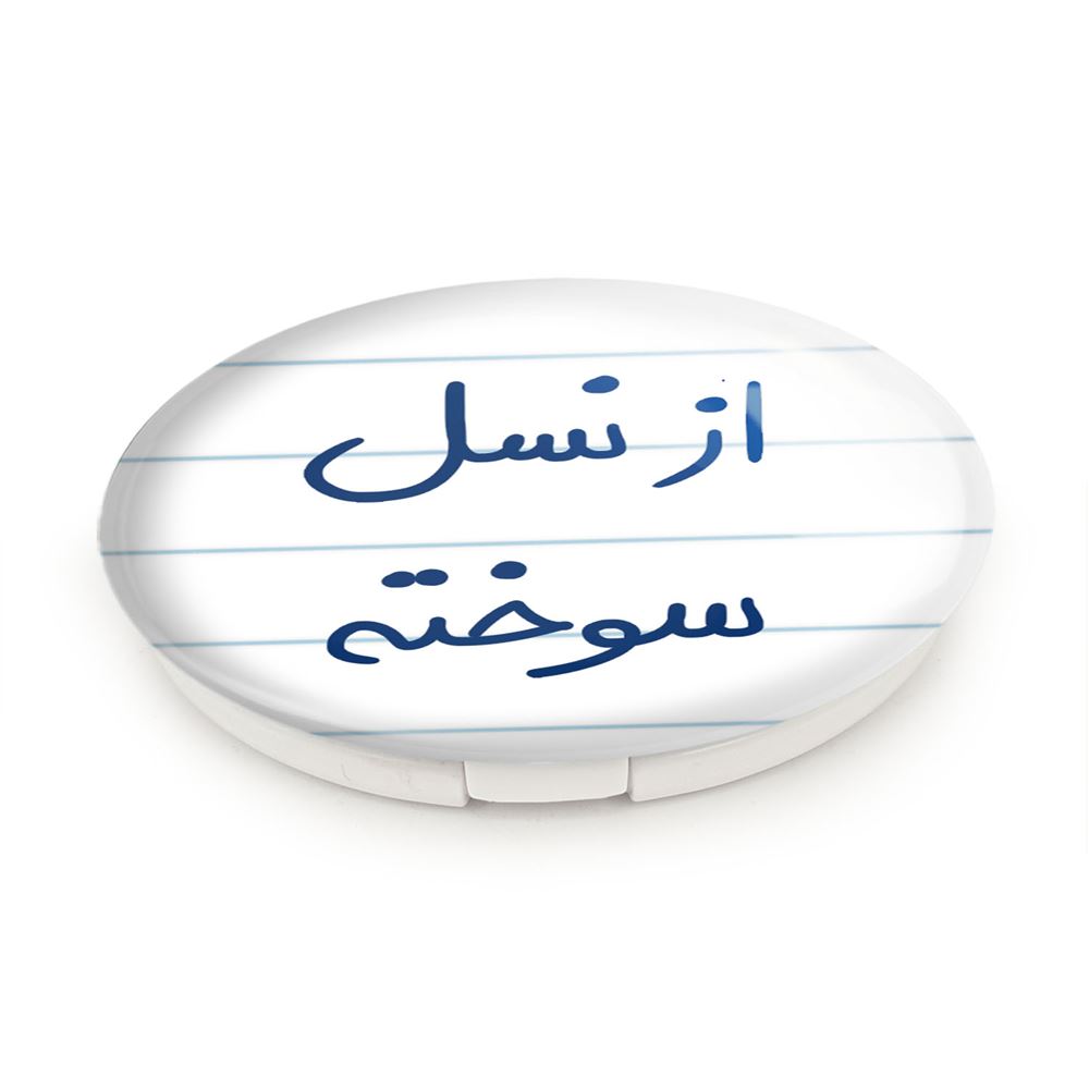 آینه های تاشو از نسل سوخته خندالو، از جنس پلاستیک فشرده ABS تولید شده و به رنگ سفید می باشد. یکی از آینه ها ابعاد واقعی را نشان داده و دیگری با قابلیت بزرگنمایی، جزئیات را بهتر نمایش می دهد. ابعاد هر یک از آینه ها، دایره ای به قطر 7.5 سانت می باشد که نه خیلی بزرگ و غیر قابل استفاده در کیف آرایشی ست و نه خیلی کوچک که تصویر خاصی در آن مشاهده نشود. آینه تاشو از نسل سوخته سایزی استاندارد و کارآمد دارد و در هر کیفی جا میگیرد. چاپ طرح بوسیله چاپگرهای دیجیتال شش رنگ با شفافیت و کیفیتی مثال زدنی بر روی یک وجه از بدنه ی آینه انجام گرفته و با روکش لمینت حرارتی پوشیده شده که در مقابل آسیب و خط و خش مقاوم بوده و کیفیت بالایی دارد. درب آینه بوسیله قفل بدنه ی آن، باز نمی ماند و کاملا بسته می شود و مناسب قرار گیری در کیف لوازم آرایش و کیف های کوچک دستی نیز هست. آینه های تاشو از نسل سوخته خندالو با تنوع طرحی بسیار بالا، سلیقه هر نوع مخاطبی را تامین میکند.