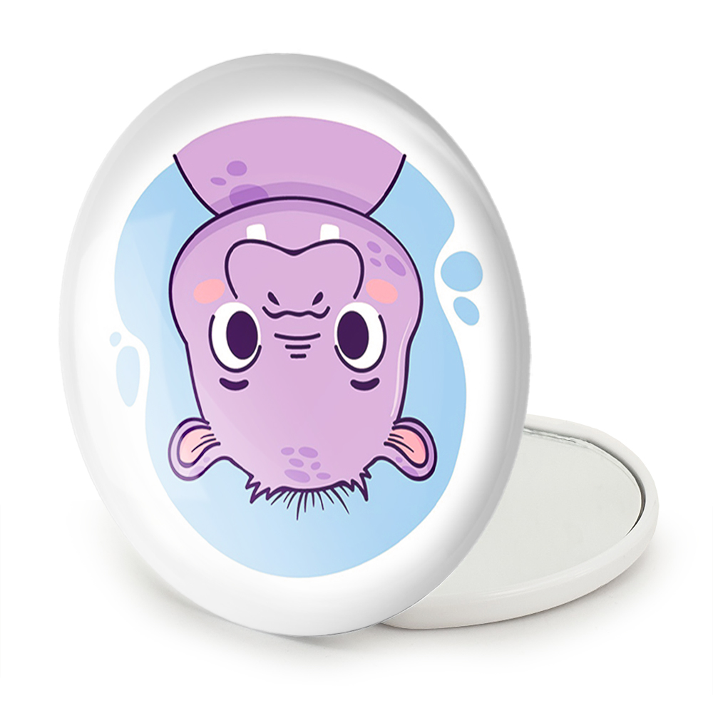 آینه های تاشو اسب آبی حیوانات بامزه خندالو، از جنس پلاستیک فشرده ABS تولید شده و به رنگ سفید می باشد. یکی از آینه ها ابعاد واقعی را نشان داده و دیگری با قابلیت بزرگنمایی، جزئیات را بهتر نمایش می دهد. ابعاد هر یک از آینه ها، دایره ای به قطر 7.5 سانت می باشد که نه خیلی بزرگ و غیر قابل استفاده در کیف آرایشی ست و نه خیلی کوچک که تصویر خاصی در آن مشاهده نشود. آینه تاشو اسب آبی حیوانات بامزه سایزی استاندارد و کارآمد دارد و در هر کیفی جا میگیرد. چاپ طرح بوسیله چاپگرهای دیجیتال شش رنگ با شفافیت و کیفیتی مثال زدنی بر روی یک وجه از بدنه ی آینه انجام گرفته و با روکش لمینت حرارتی پوشیده شده که در مقابل آسیب و خط و خش مقاوم بوده و کیفیت بالایی دارد. درب آینه بوسیله قفل بدنه ی آن، باز نمی ماند و کاملا بسته می شود و مناسب قرار گیری در کیف لوازم آرایش و کیف های کوچک دستی نیز هست. آینه های تاشو اسب آبی حیوانات بامزه خندالو با تنوع طرحی بسیار بالا، سلیقه هر نوع مخاطبی را تامین میکند.